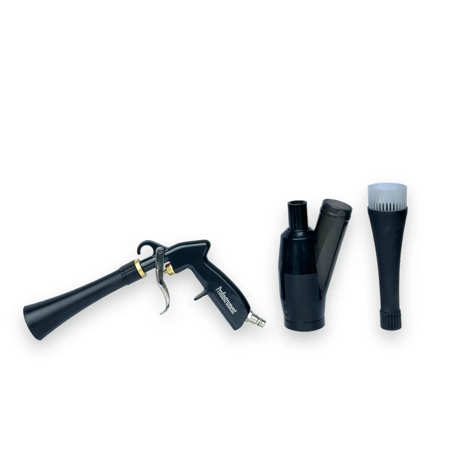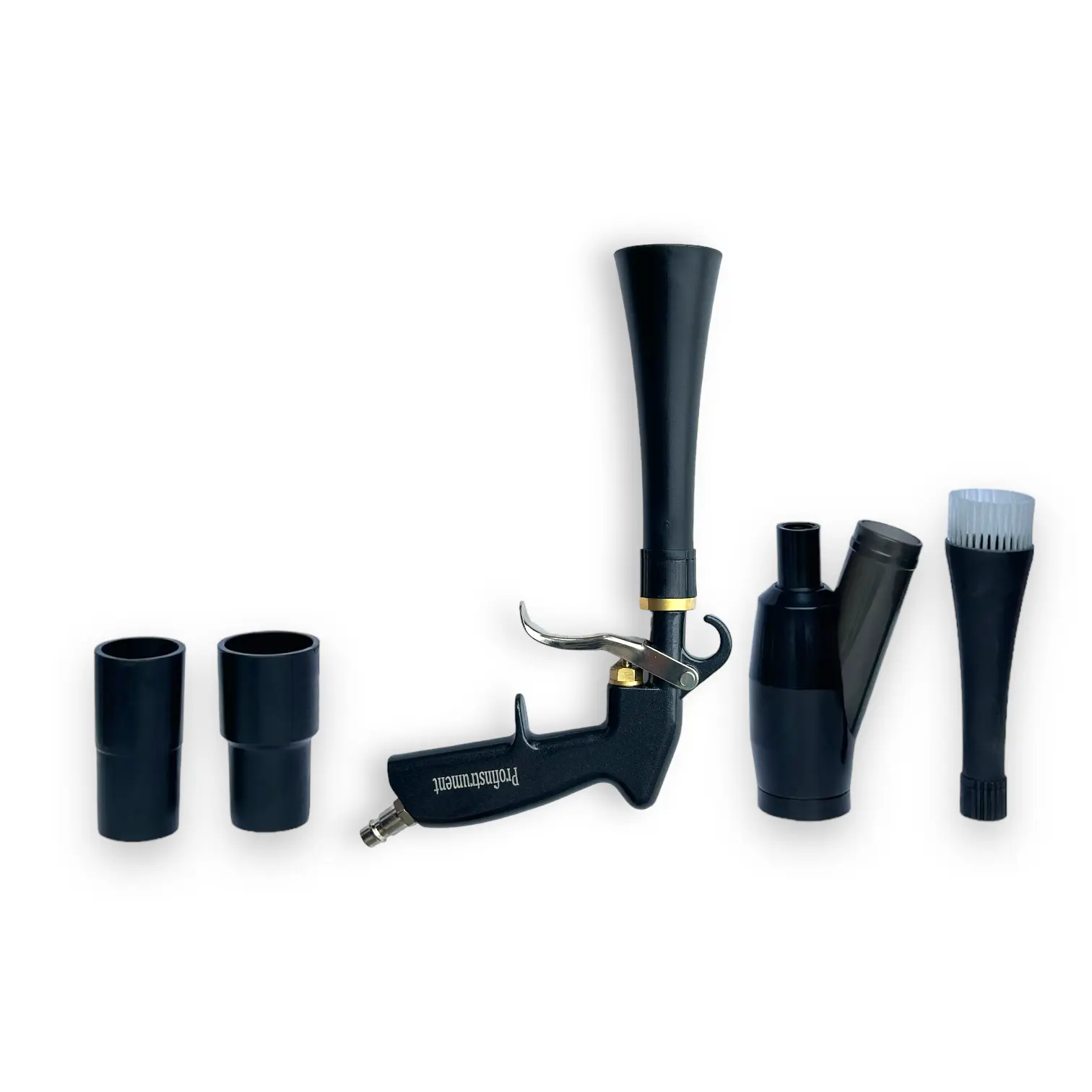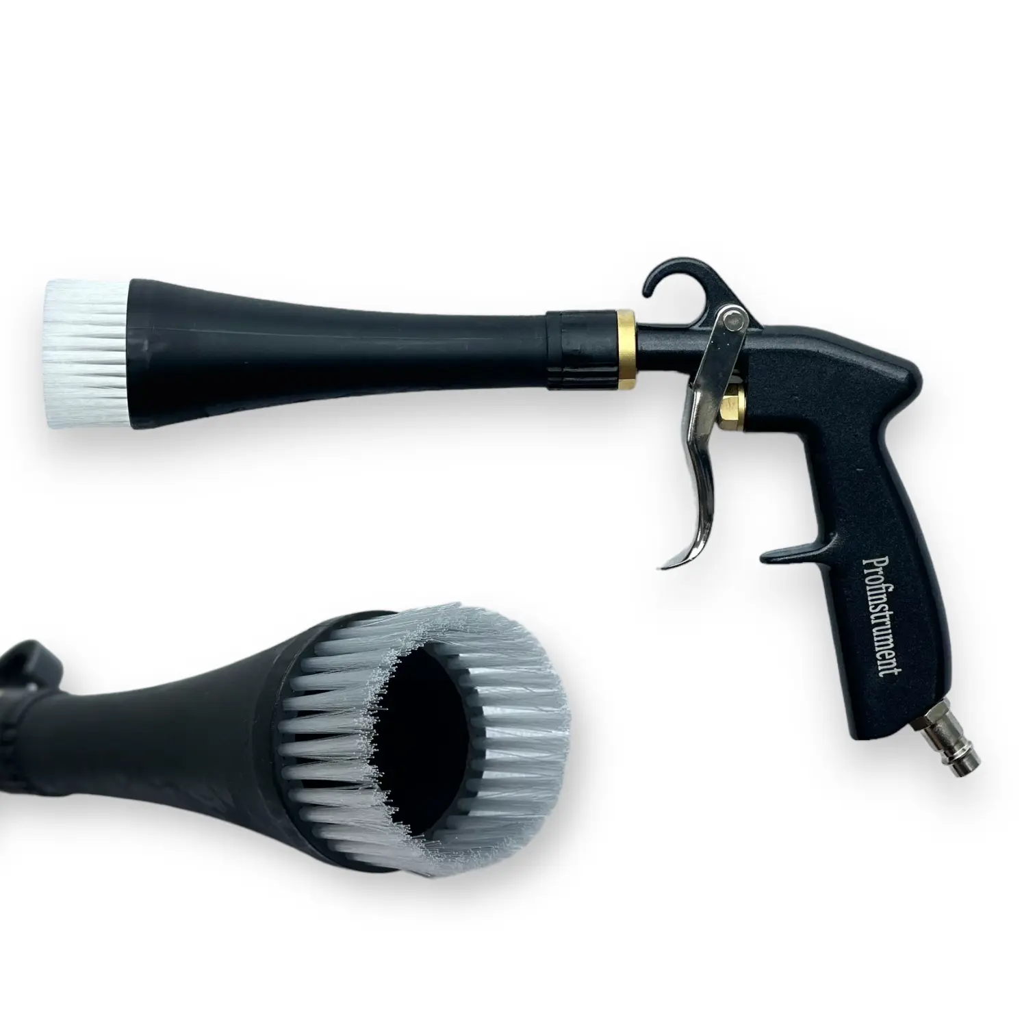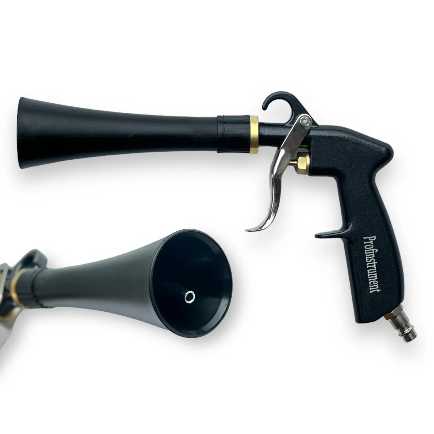 Профессиональный выбивной аэропистолет Profinstrument M-18 Tornado с подключением к пылесосу – идеальный инструмент для глубокой очистки автомобильных поверхностей. Он эффективно удаляет грязь и песок из ковровых покрытий, пластика, кожи, обивки, двигателей, швов кузова и откидных крыш.