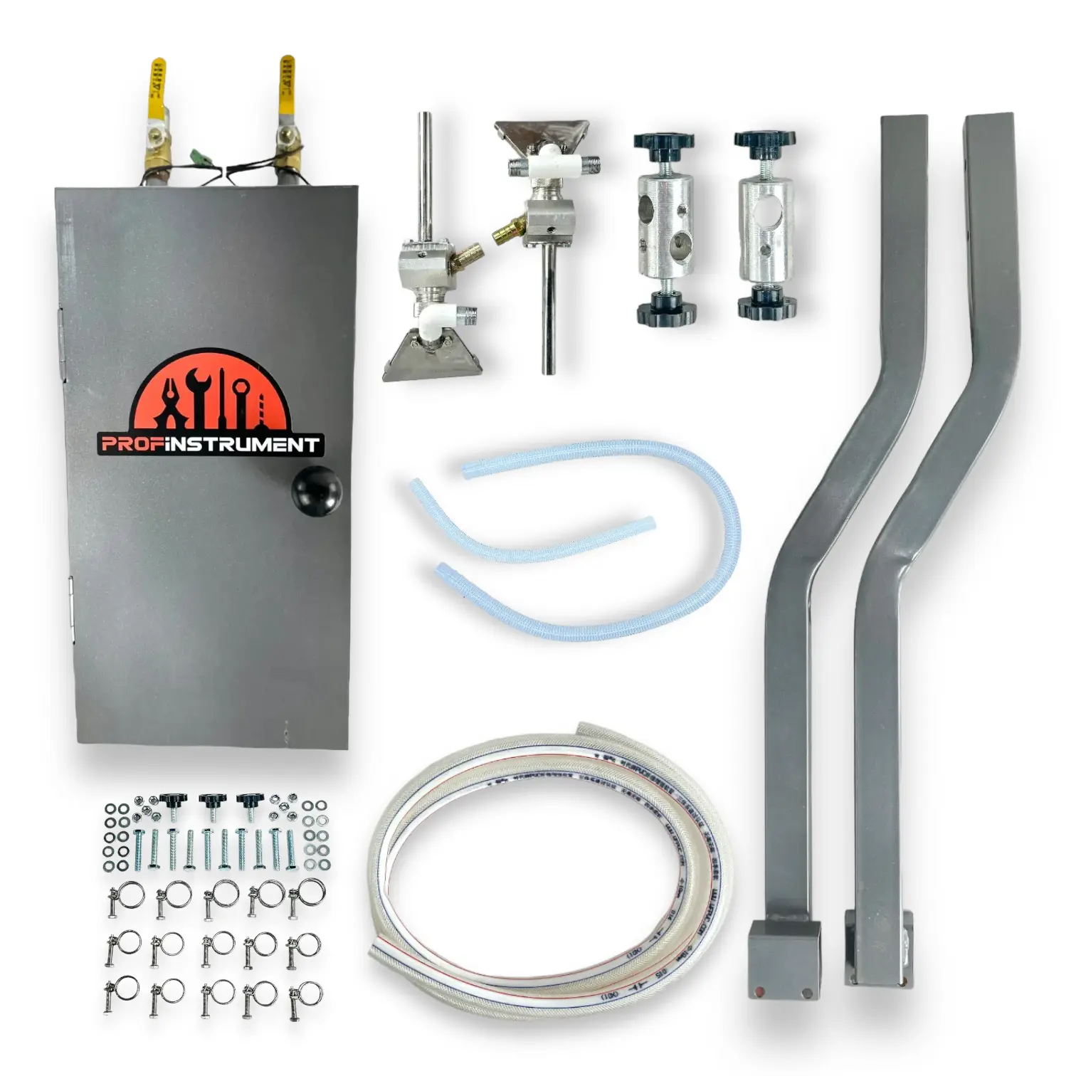 Устройство для разметочной машины Profinstrument является специализированным оборудованием, предназначенным для размещения и точного распределения стеклянных шариков во время нанесения дорожной разметки. Это устройство значительно повышает видимость дорожных разметок ночью и при плохой видимости, обеспечивая их ретрорефлективные свойства.