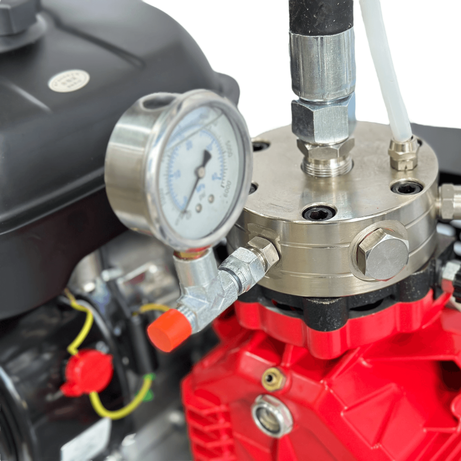 - В комплекте: манометр, набор инструментов и шланг.