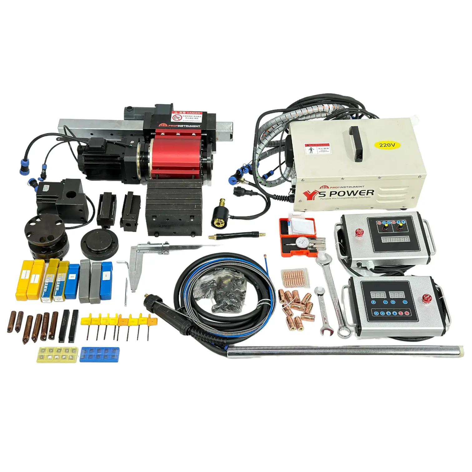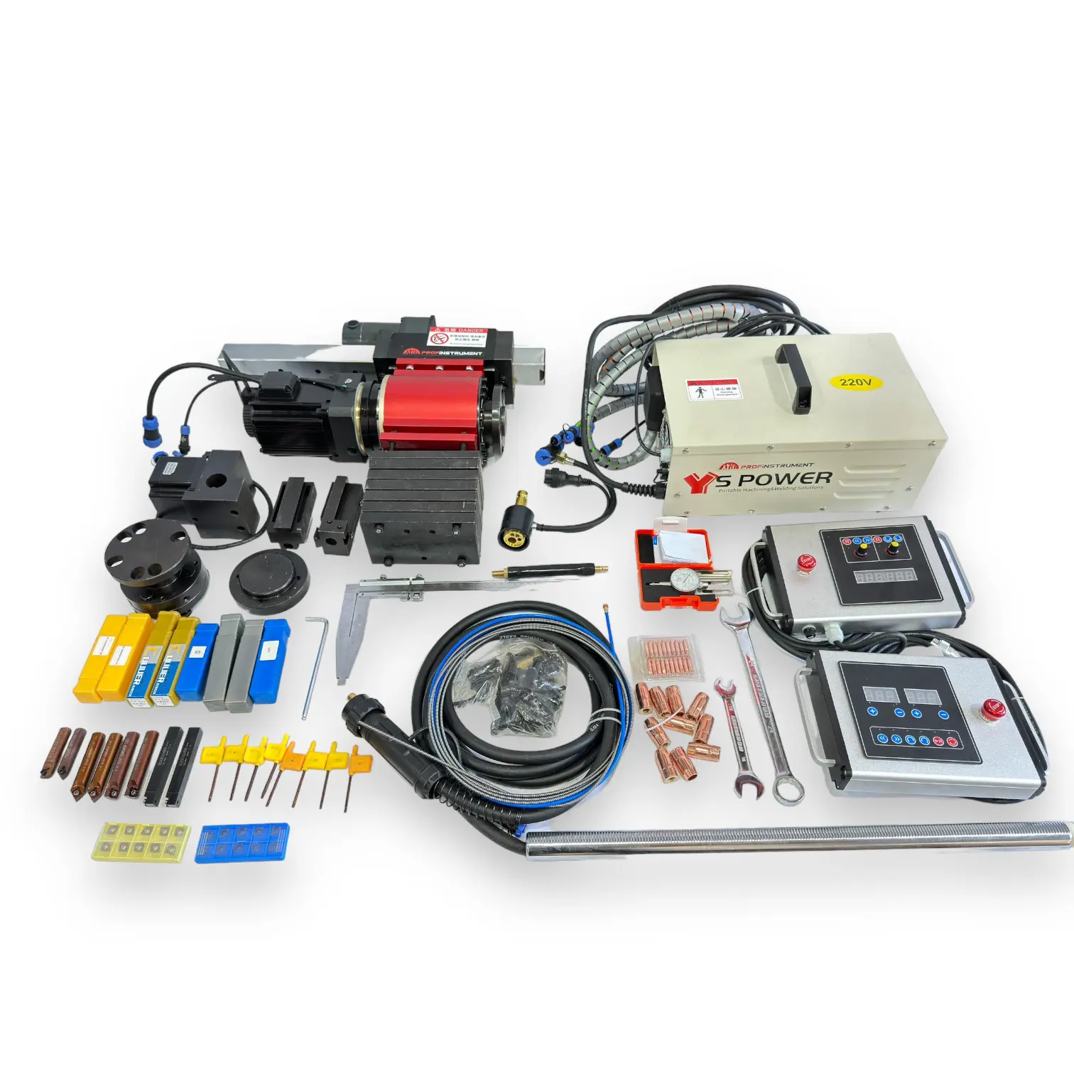 Как всегда, компания S Power радует богатой комплектацией станка, включающей наплавочный вал, режущий инструмент, пластины, наконечники, индикаторы, болты крепления, а также два пульта управления для токарной обработки, расточки и наплавки.”