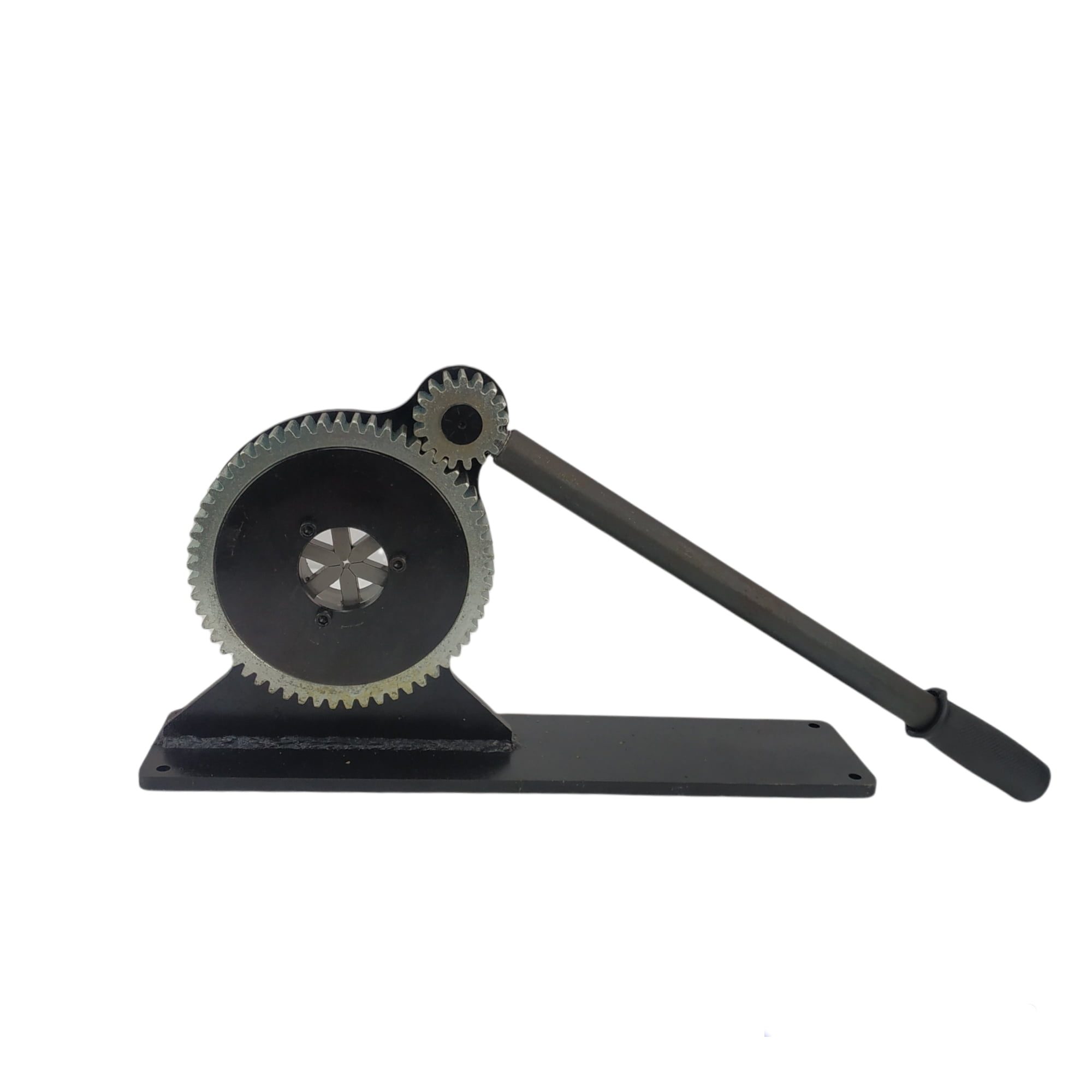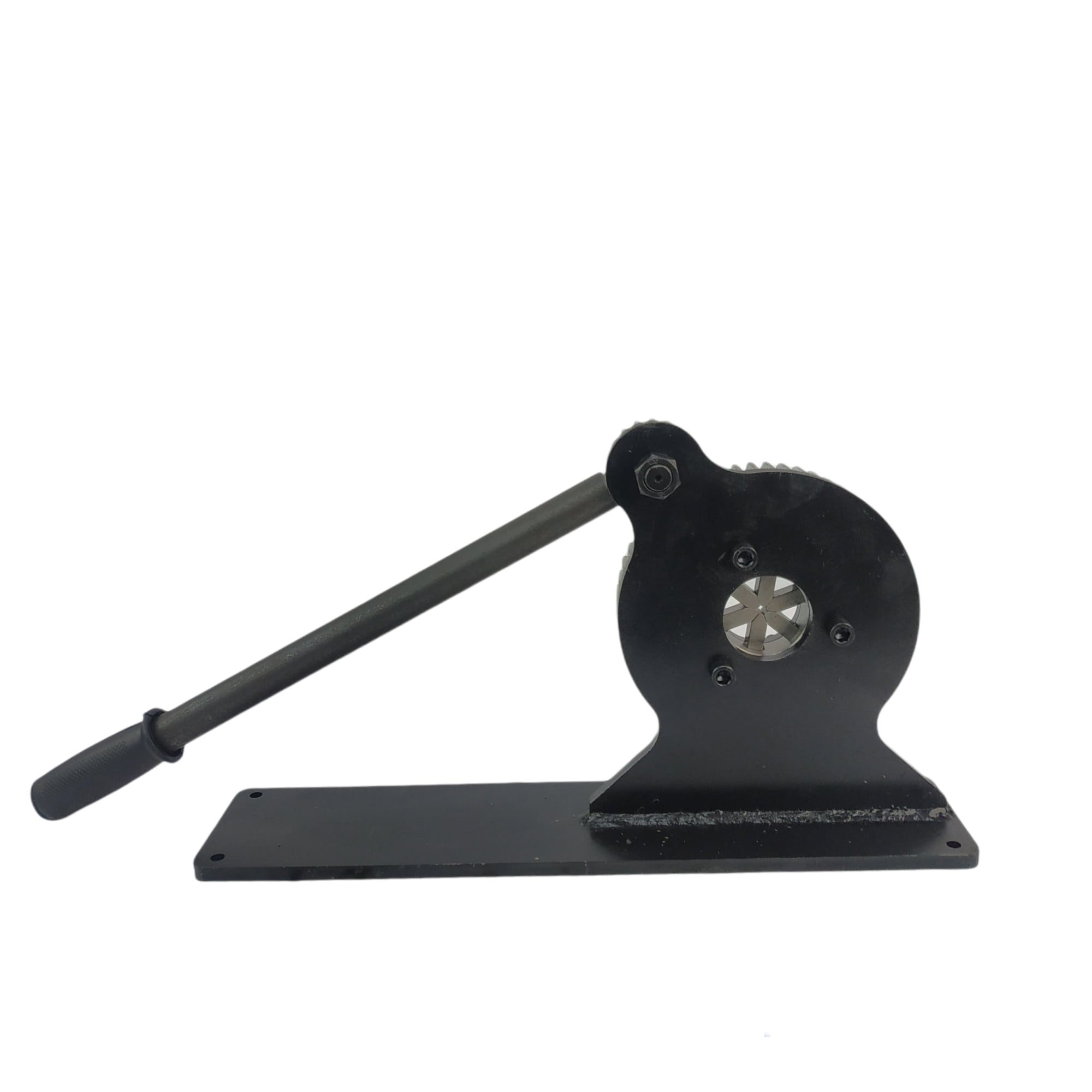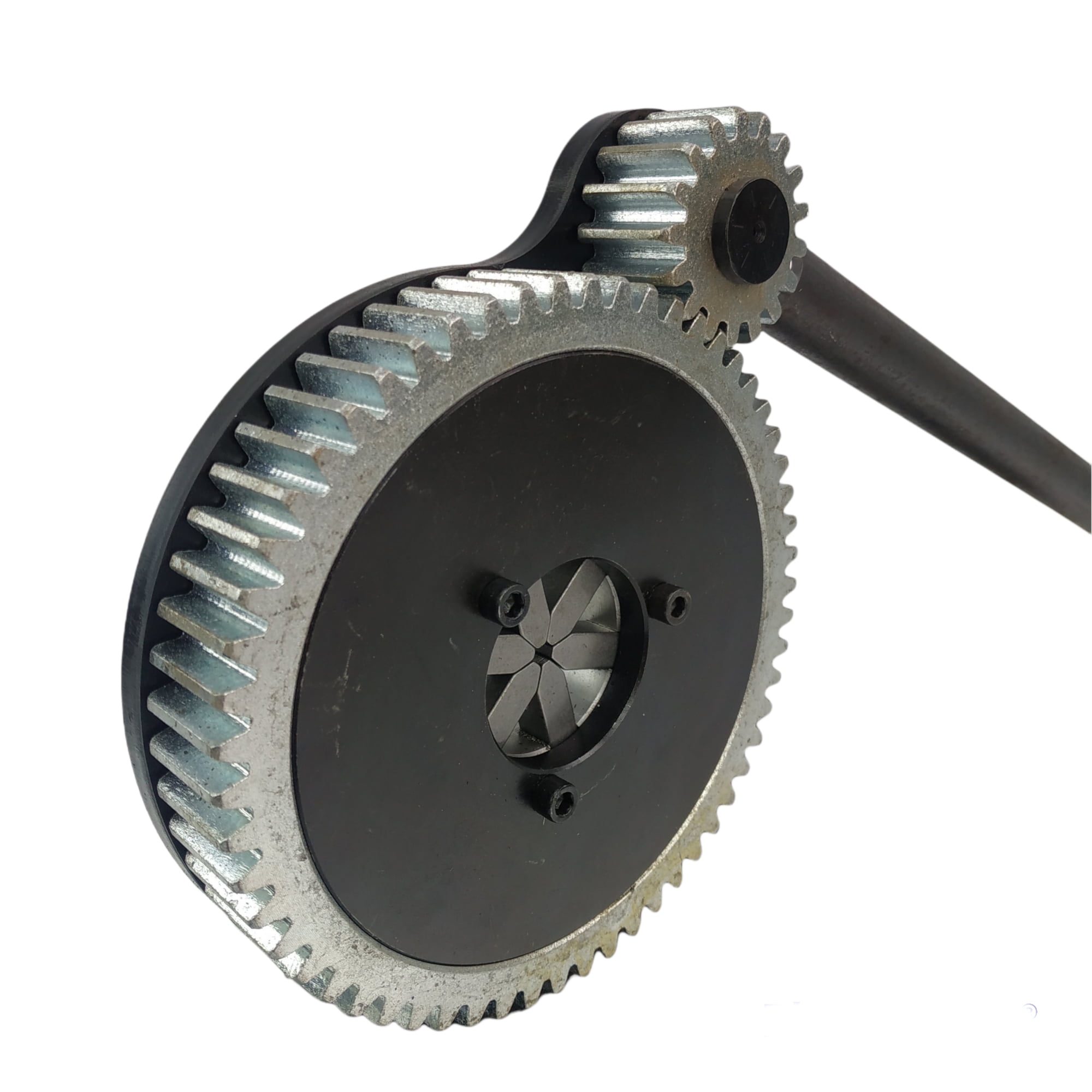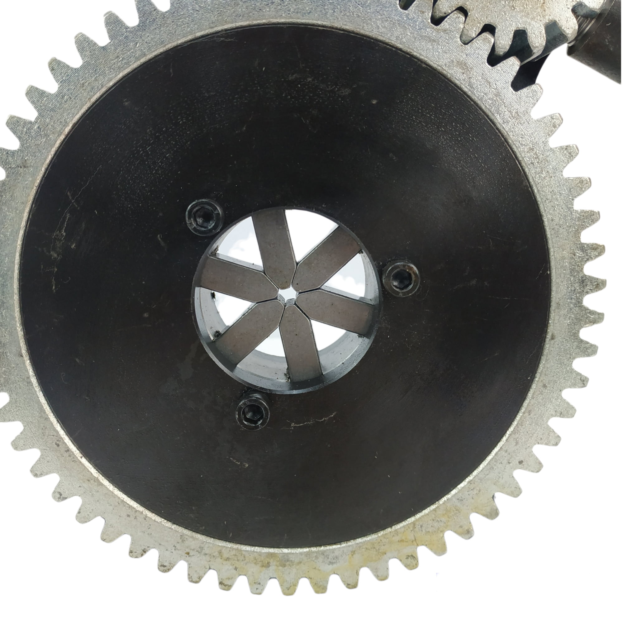 В маленькое колесико вкручивается ручка, с помощью которой подается усилие на зубце внутри большого диска. При воздействии их на муфту происходит сжатие и рукав становится обжатым.