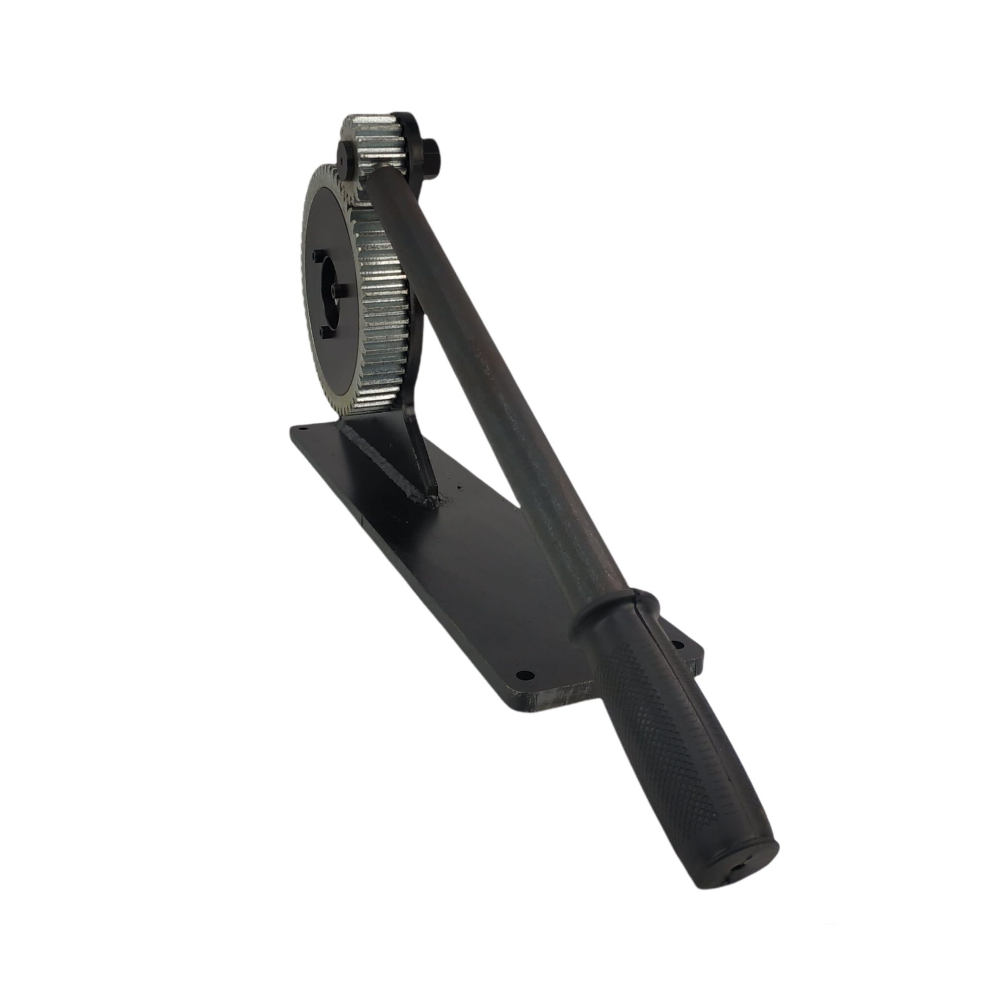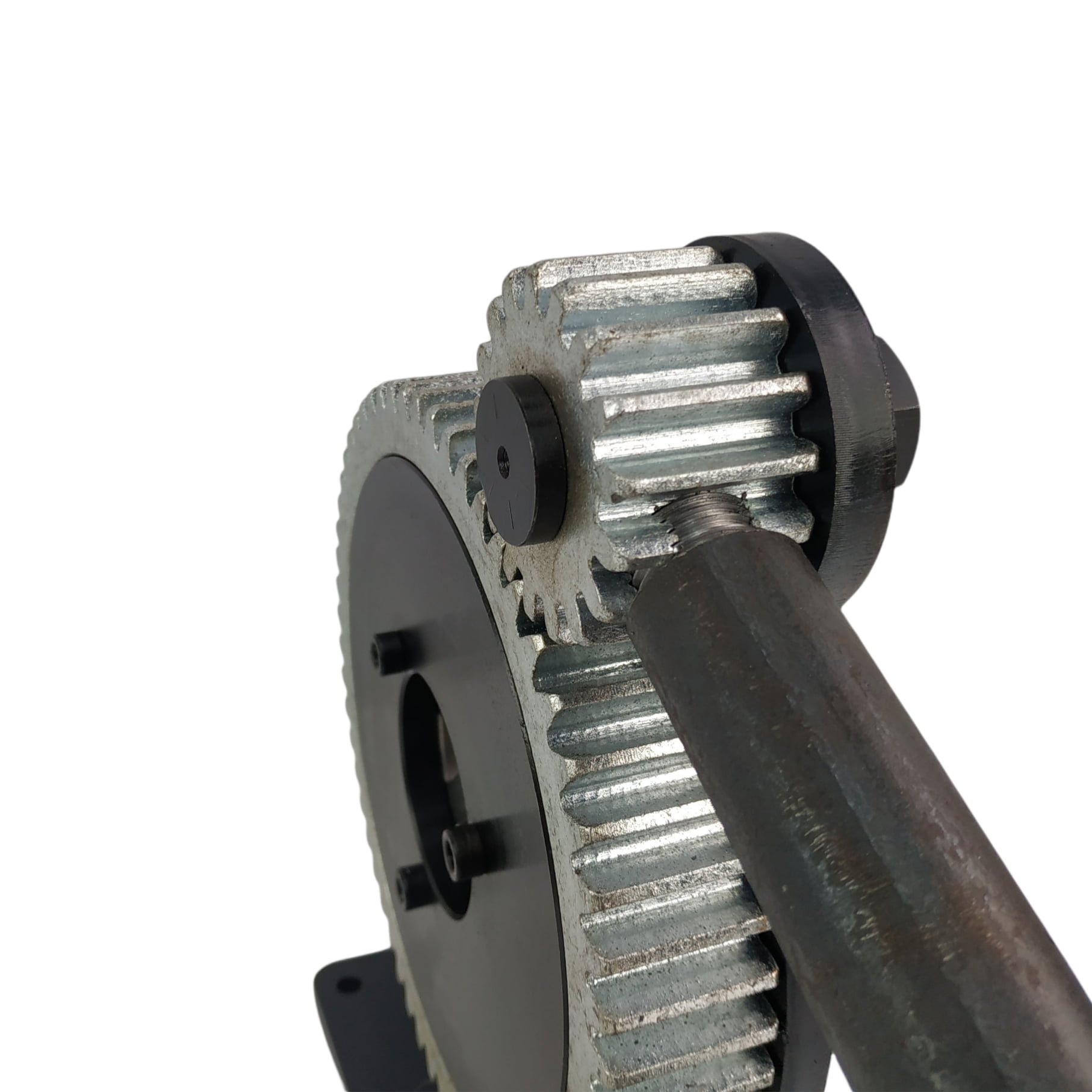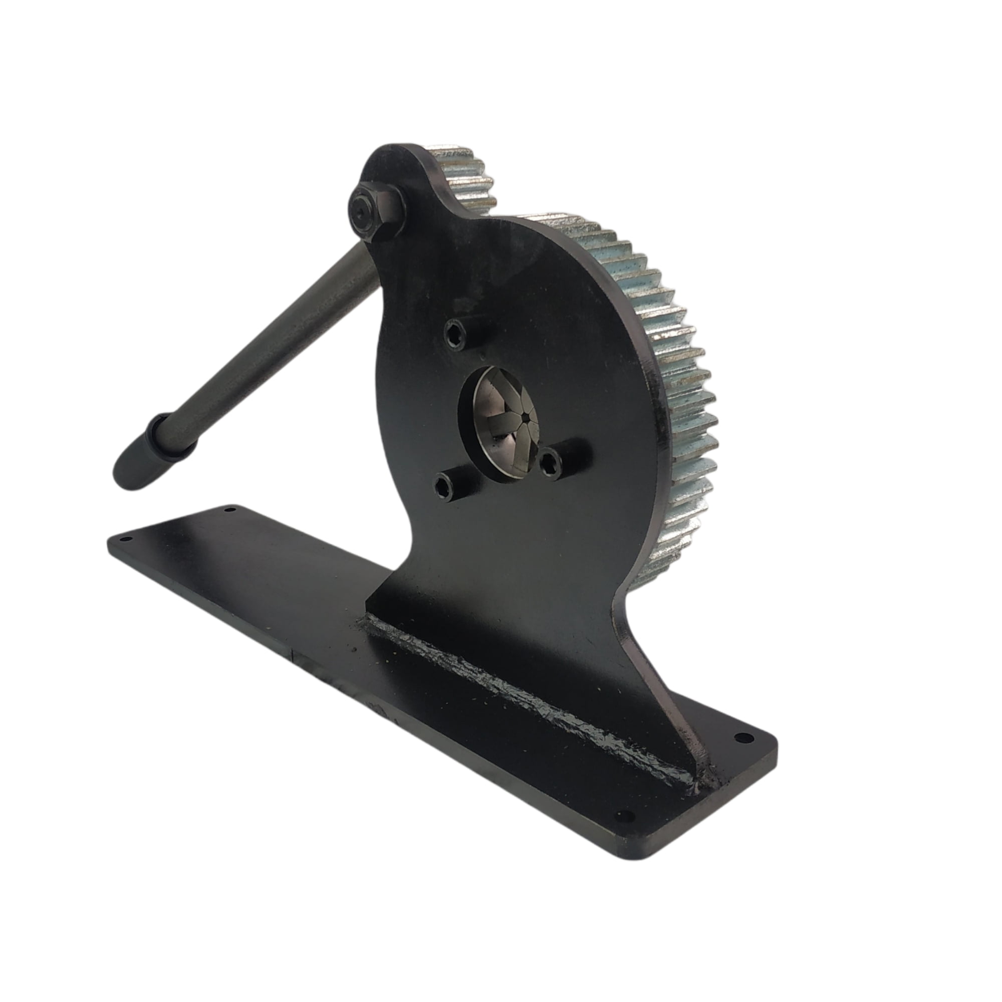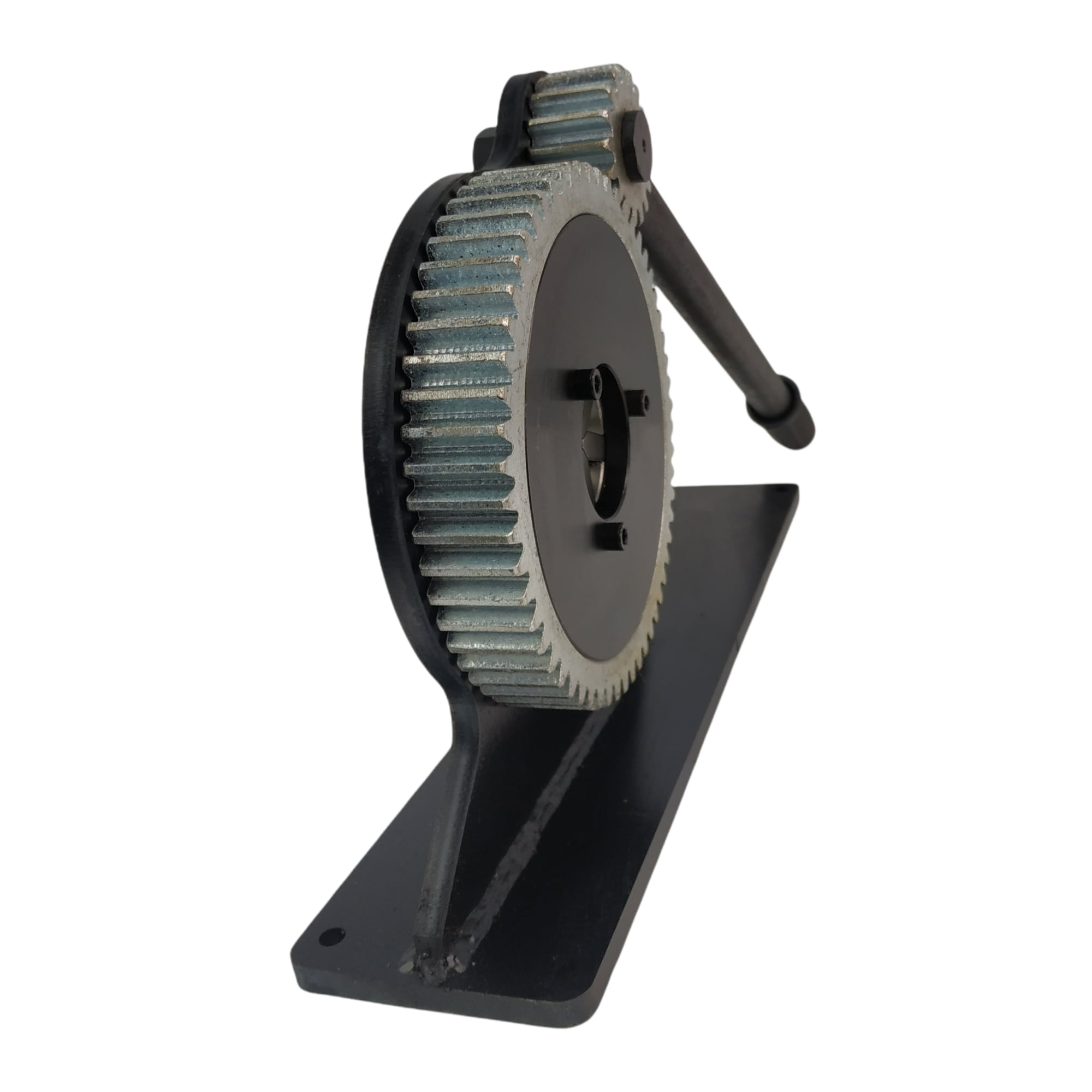 В маленькое колесико вкручивается ручка, с помощью которой подается усилие на зубце внутри большого диска. При воздействии их на муфту происходит сжатие и рукав становится обжатым.