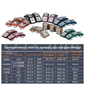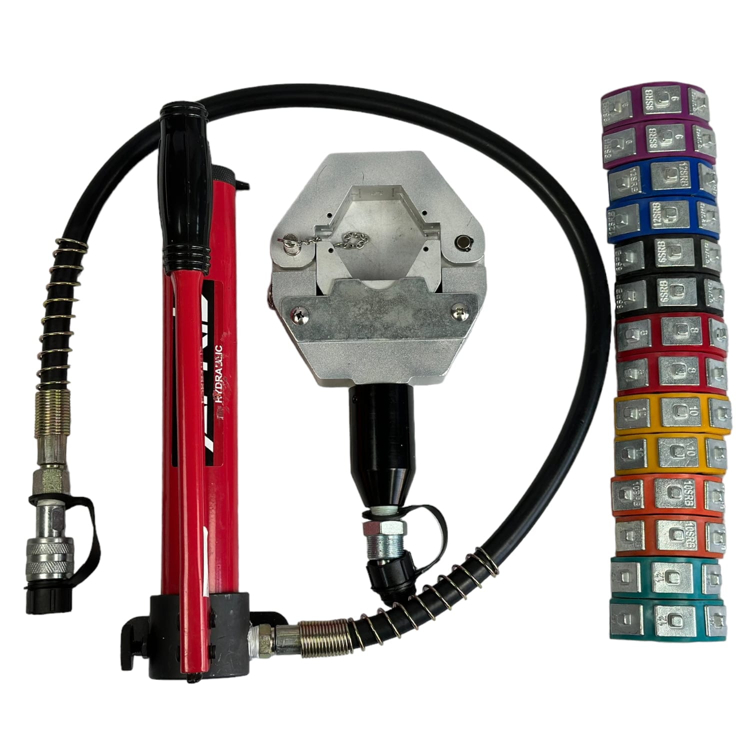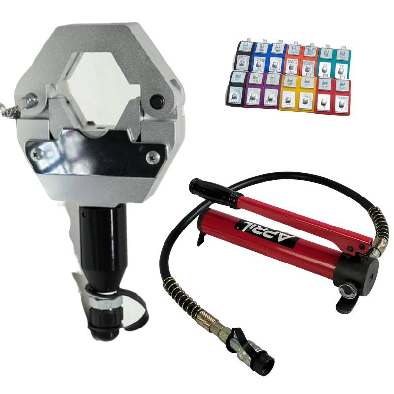 Инструмент гидравлический April hydraulic Profinstrument укомплектован стандартными насадками из 7 штук. Для удобства распознавания каждая обойма с кулачками имеет свой цвет и диаметр: