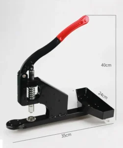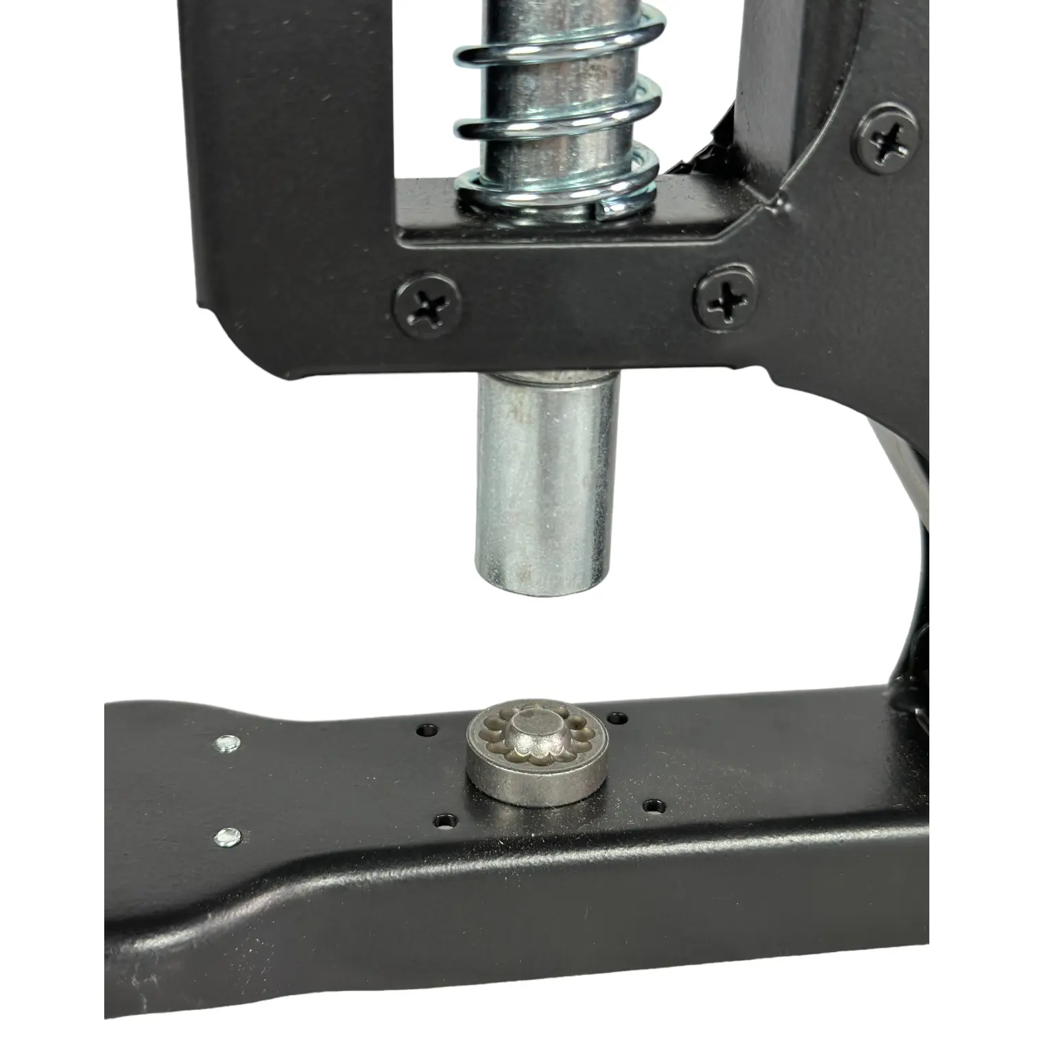 Это универсальный пресс для фурнитуры сможет с легкостью установить кнопки, блочки, люверсы, заклепки или пуговицы под обтяжку.