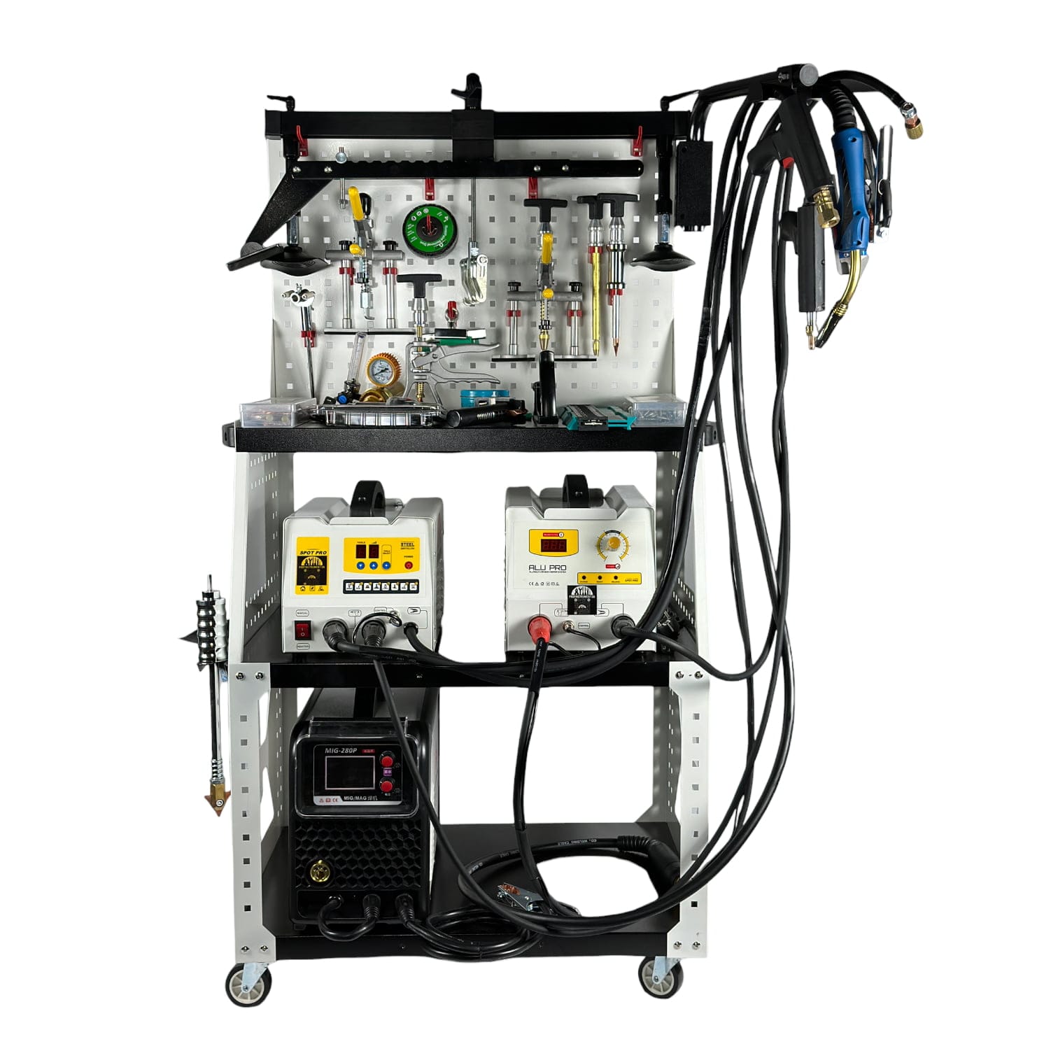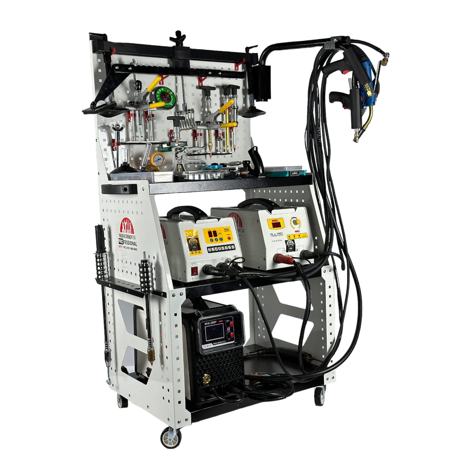Рихтовочный комплекс (Споттер 3в1 алюминий, сталь, сварка) Profinstrument RKA 3000 – это универсальный рихтовочный комплекс, предназначенный для расширения разнообразных задач в сфере авторемонта и восстановления автомобильных кузовов, предназначенный для решения широкого спектра вопросов в авторемонтной отрасли, связанных с рихтовкой и рихтовкой. , в частности, для материалов алюминия, стали и задач сварки. Этот инновационный инструмент для использования в автомастерских, где важно не только эффективно рихтовать кузов, но и обеспечивает высококачественную сварку.