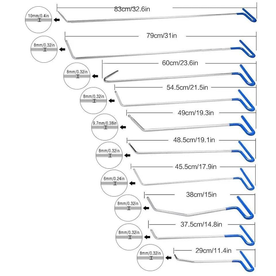 Набор крючков для рихтовки автомобиля идеально подходит для автомобильных мастерских и домашних мастеров , занимающихся ремонтом автомобилей. Они могут использоваться для готовки любых типов автомобилей и способны значительно ускорить и облегчить процесс работы.