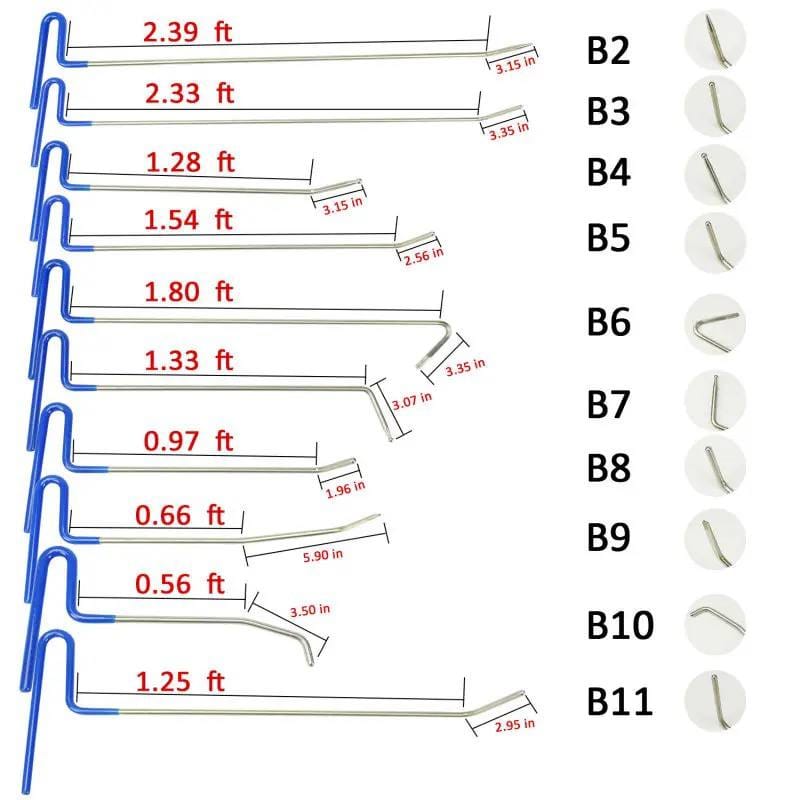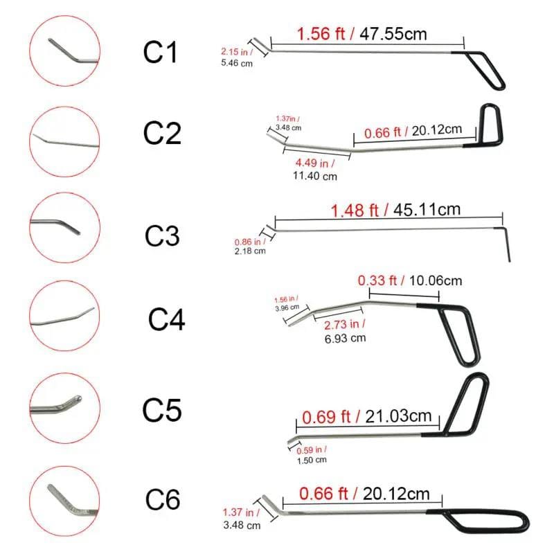 Разнообразие : Набор содержит 21 крючок разной толщины, длины и формы, что позволяет выбрать нужный инструмент для каждого типа вмятины.