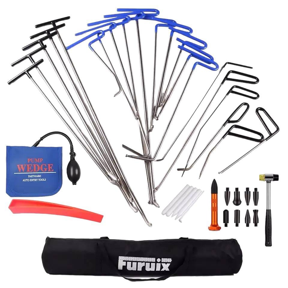 Набор для рихтовки автомобиля является идеальным решением для удаления вмятин без покраски (PDR – Paintless Dent Repair). Он содержит широкий выбор профессиональных инструментов, подходящих для вмятин разного размера.