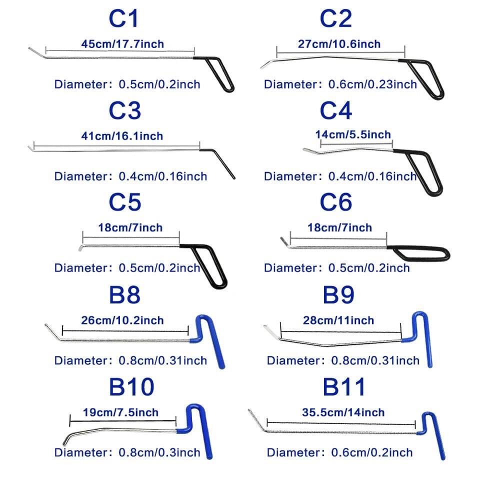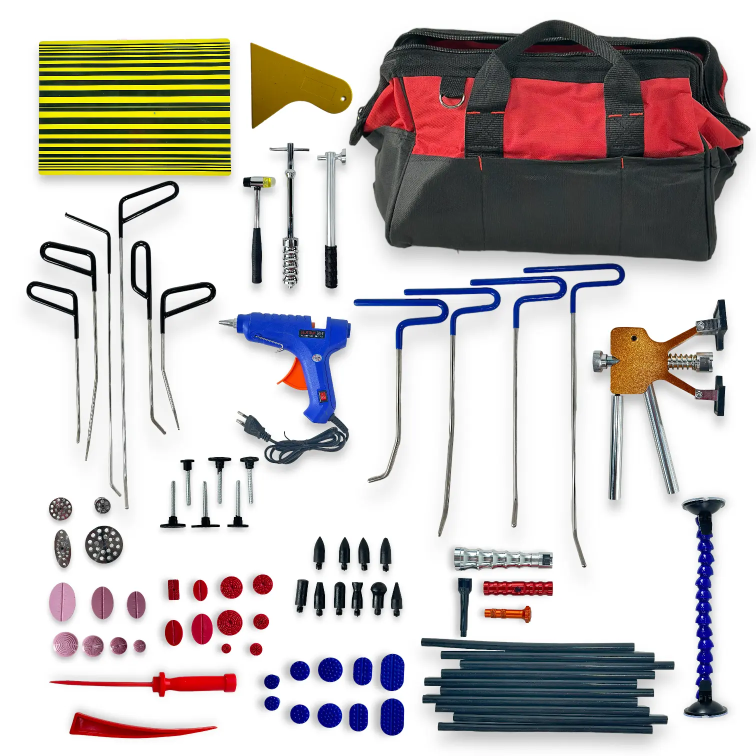 Цей набір для ремонту кузова автомобіля включає інструменти для всіх видів робіт, що робить його ідеальним для як професіоналів, так і автолюбителів. Інструменти для швидкого ремонту вм’ятин забезпечують надійність та довговічність. Якщо вам потрібен інструмент для безфарбового ремонту, цей комплект стане надійним помічником для збереження ідеального стану вашого автомобіля.