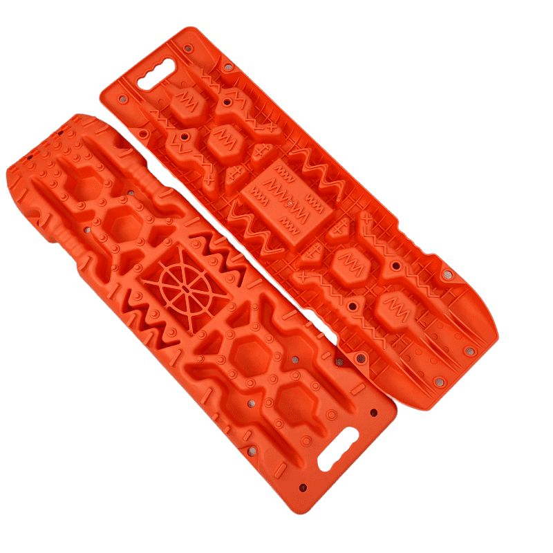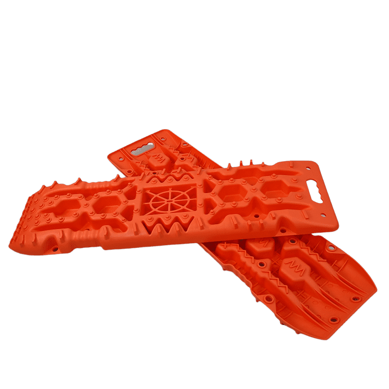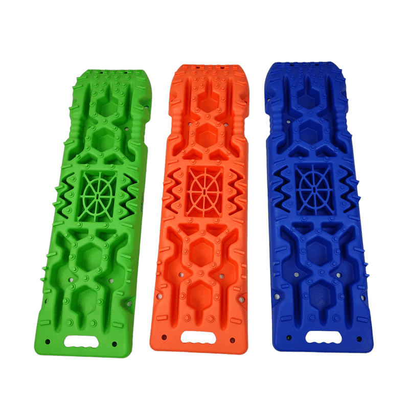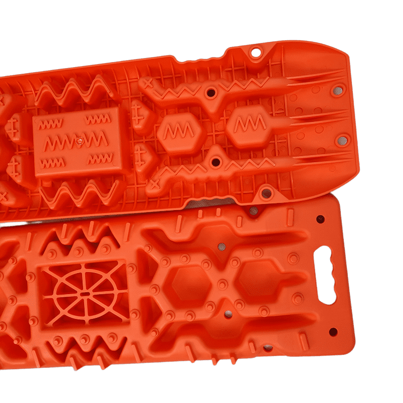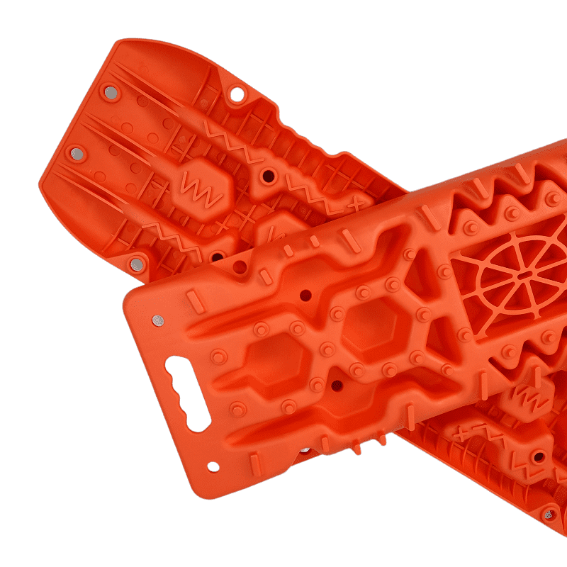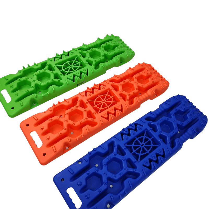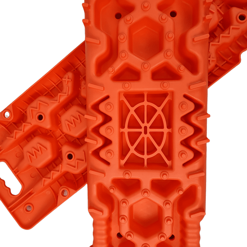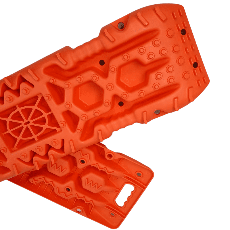 Специально продуманная форма Сэнд-траков: по всей их поверхности есть выступы разного размера и формы, позволяющие протекторам цепляться за них в любом положении колеса относительно Сэнд-траков.