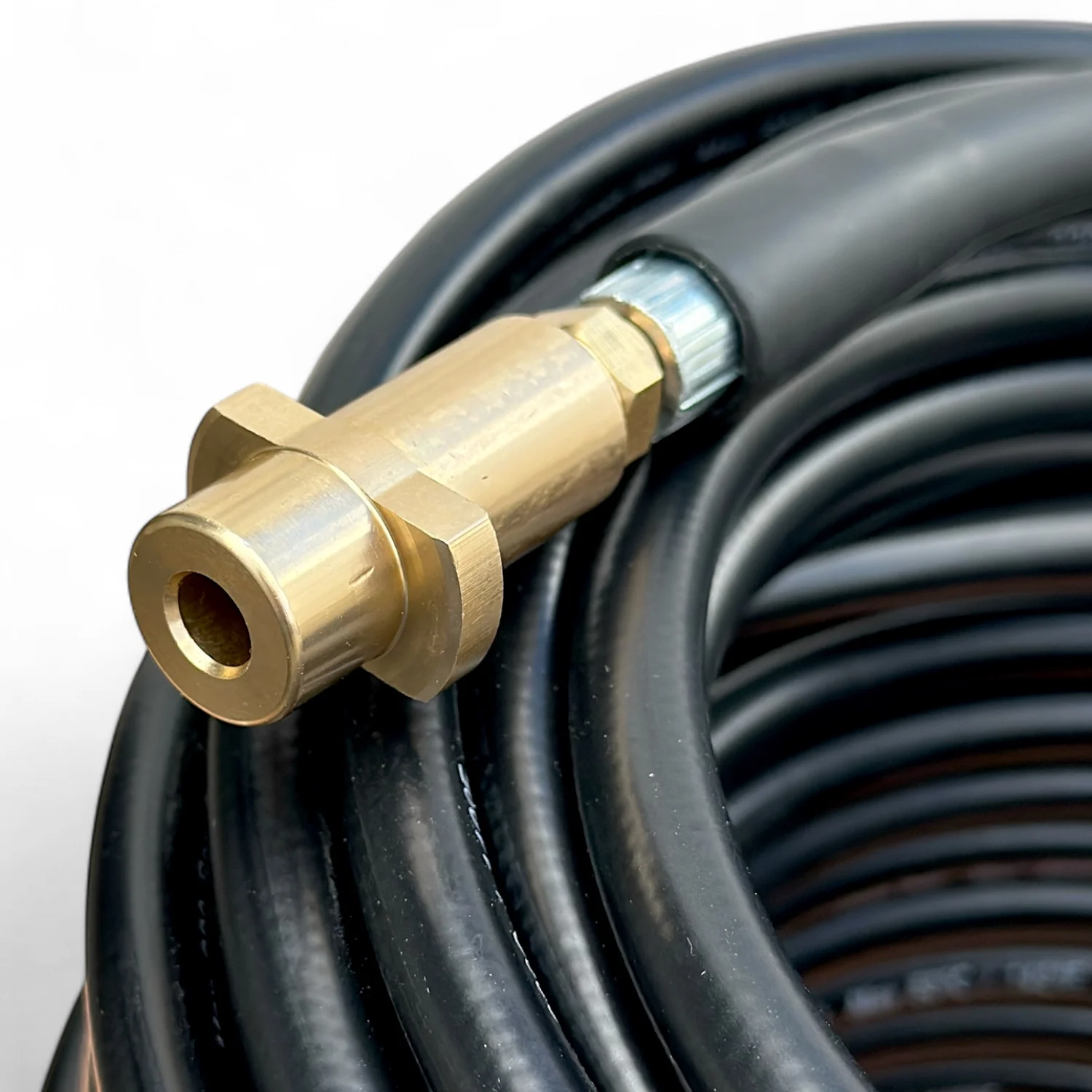 Оснащен специальной форсункой, имеющей одну мощную струю вперед для пробивки даже сложных засоров, а также три струи назад, способствующих продвижению шланга по трубе и тщательной очистке ее стенок. Такая конструкция позволяет эффективно бороться с грязью, жировыми отложениями, илом и другими загрязнениями.