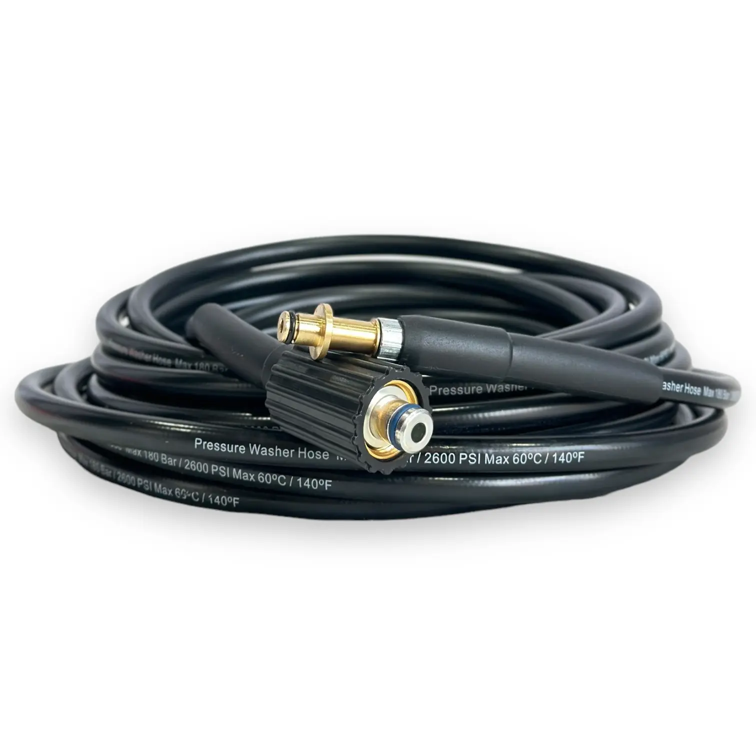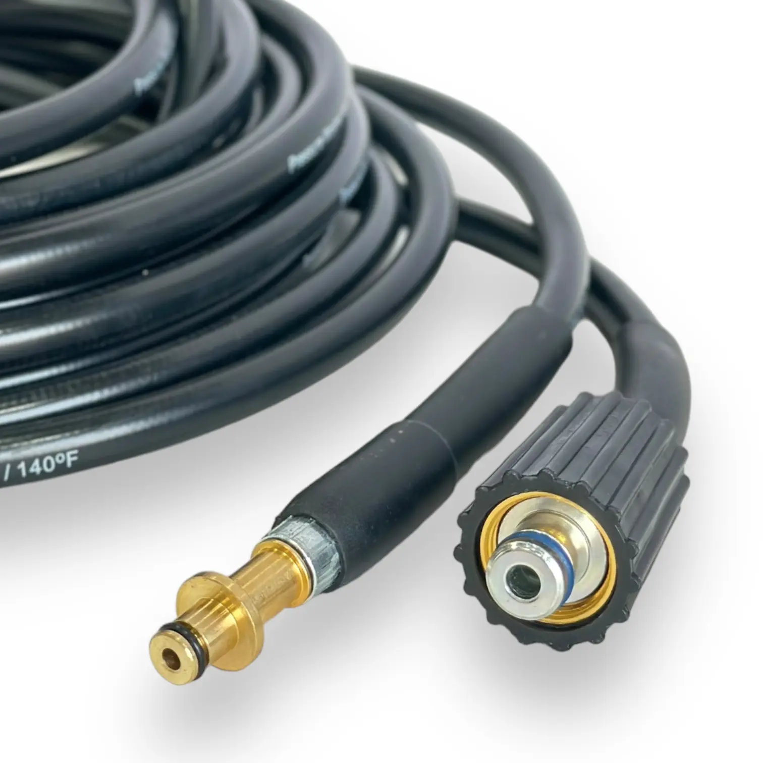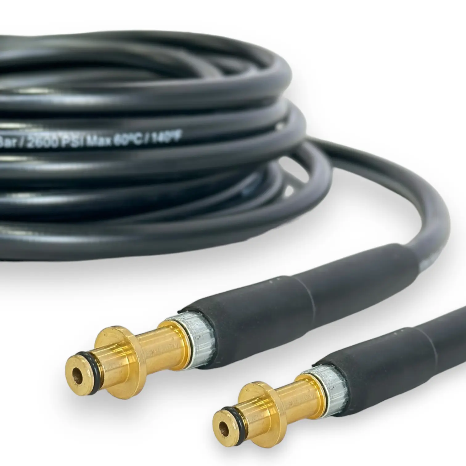 Высококачественный и надежный шланг предназначен для использования с мойками высокого давления серий Karcher K2-K7. Изготовлен из двухслойной мягкой резины с однослойным металлическим оплетением, обеспечивает длительный срок службы и высокую эффективность.