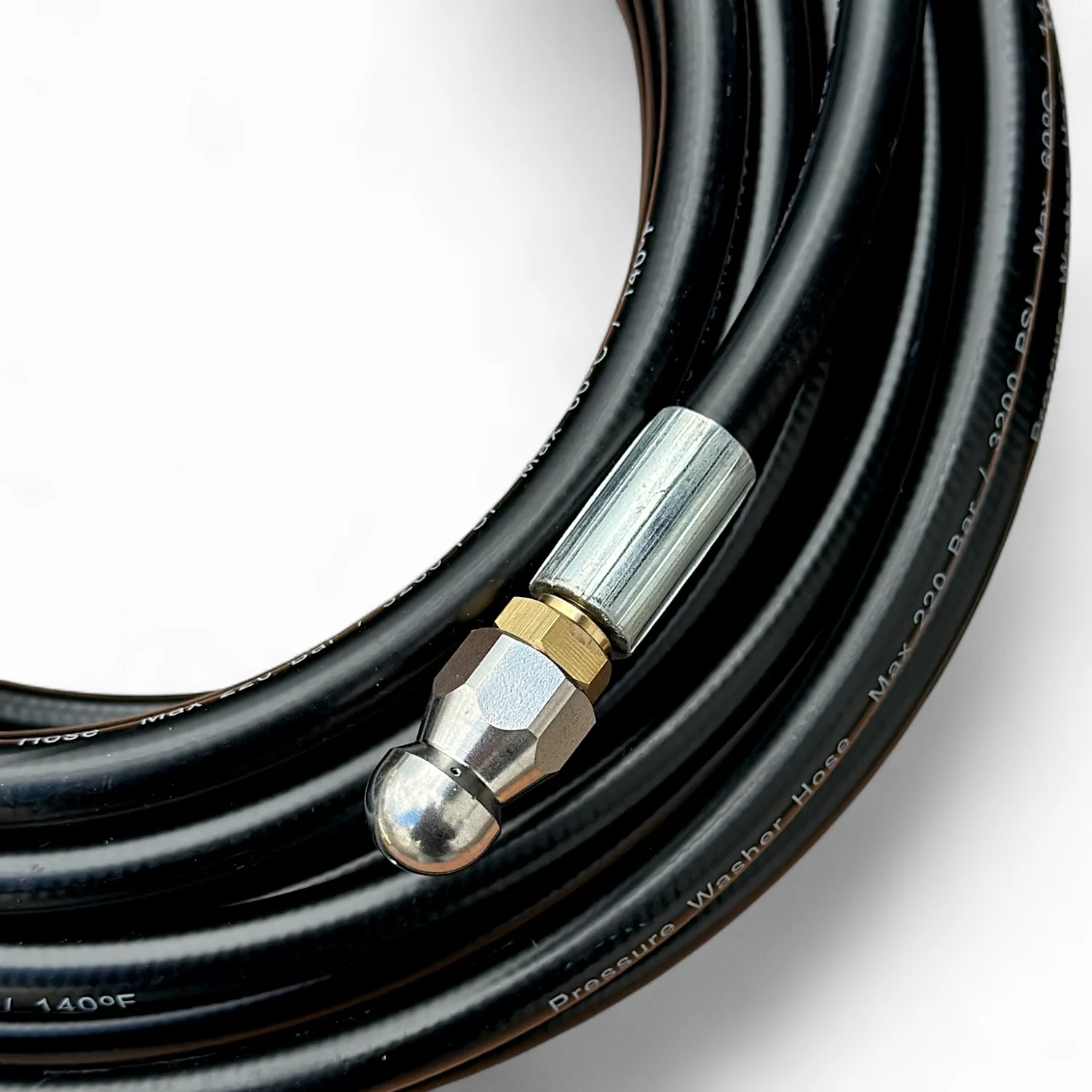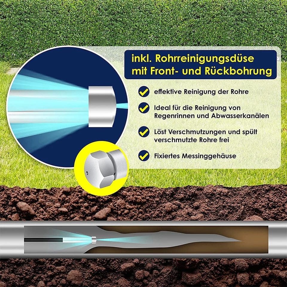 Универсальный гибкий шланг идеально подходит для эффективной прочистки канализационных и водосточных труб. Совместимый с любым аппаратом высокого давления, он подключается непосредственно к пистолету мойки, обеспечивая удобство и простоту в использовании.