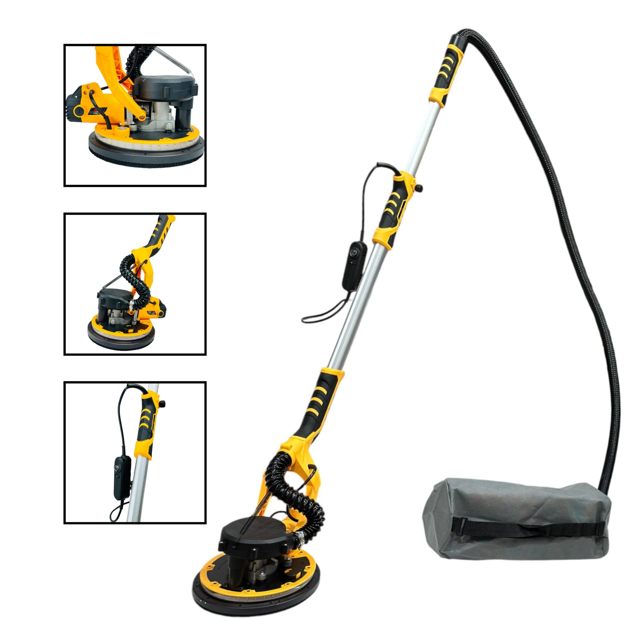 Профессиональная шлифмашина жираф Profinstrument DWS-225FT идеально подходит для сухой шлифовки стен и потолков из гипсокартона или штукатурки. Ее подвижная шлифовальная головка, расположенная на телескопической ручке, обеспечивает отличное прилегание к обрабатываемой поверхности в двух плоскостях движения. Эффективная система пылеудаления с возможностью подключения строительного пылесоса обеспечивает чистоту на рабочем месте.