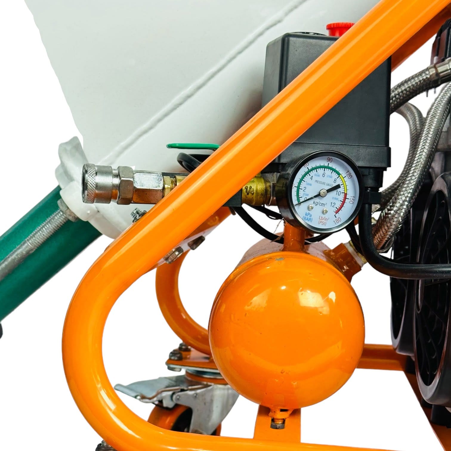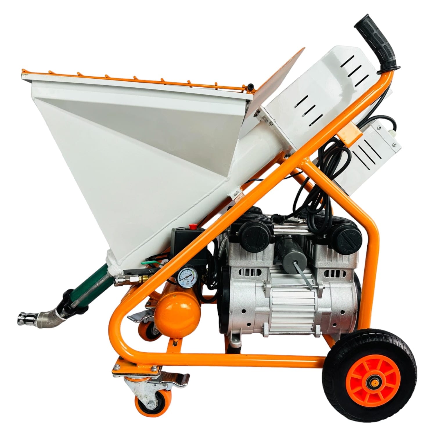 Шпаклевочно-штукатурная станция со шнековым насосом Profinstument 920 и встроенным компрессором предназначена для подачи и нанесения готовых строительных растворов под давлением до 20 бар и распыления с помощью сжатого воздуха.