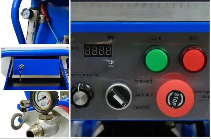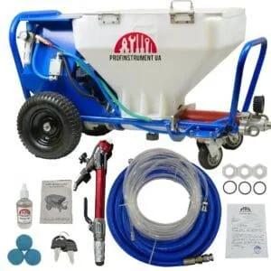 Мощность установки позволяет использовать ее для шпаклевочных и штукатурных работ в квартирах, офисах и коттеджах.