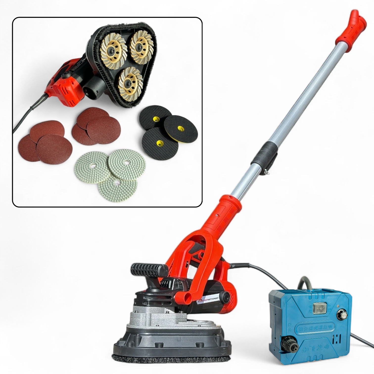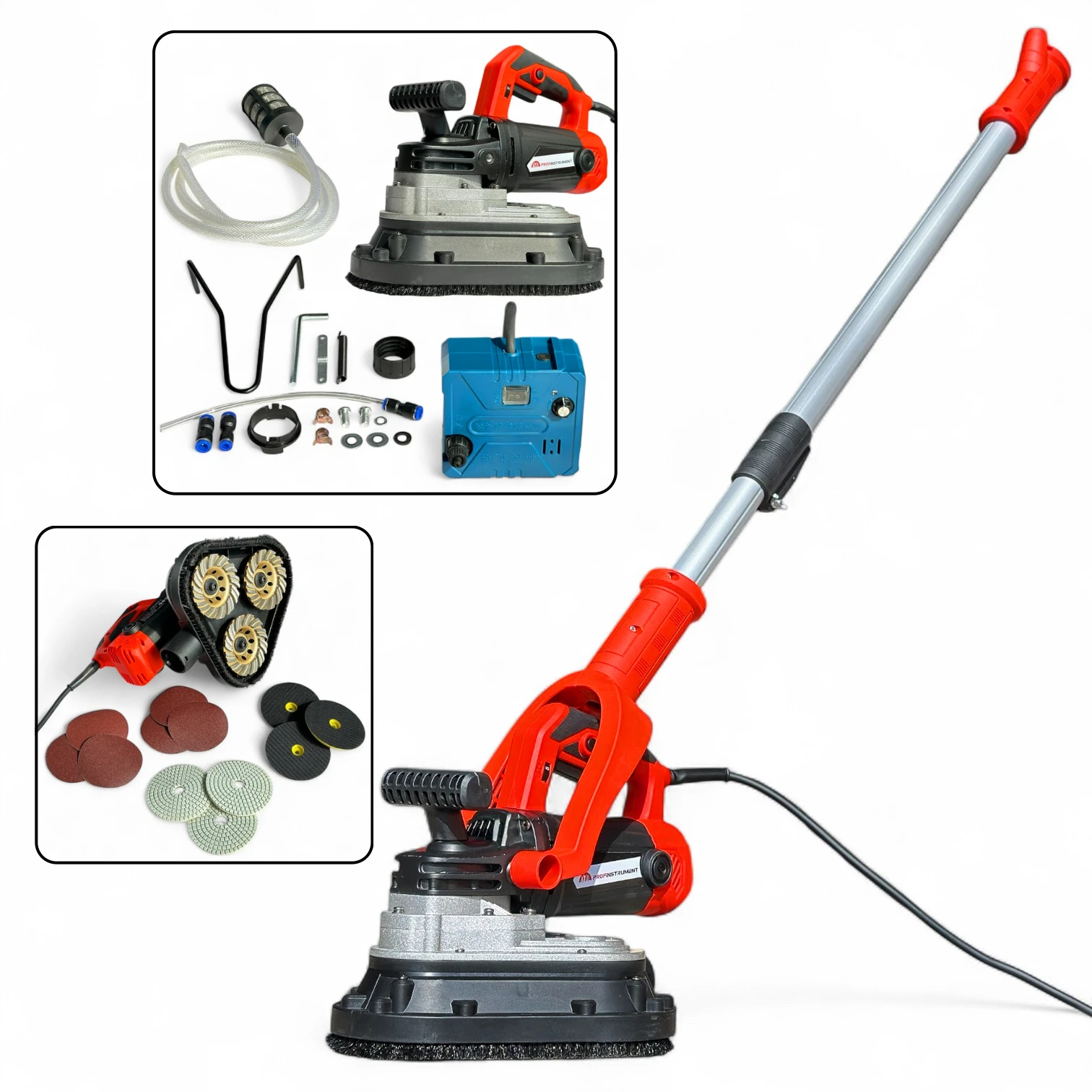 Может использоваться как ручная (без телескопической ручки) или с телескопической ручкой, что делает шлифовку удобной как для полов, так и для стен.