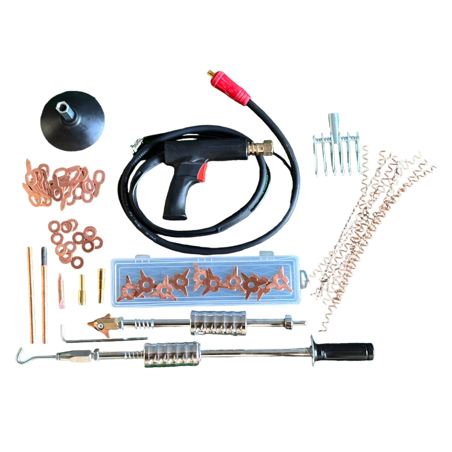 С помощью споттера к поврежденной поверхности приваривают специальный крепежный элемент, за который затем необходимо вытащить деформированную поверхность.