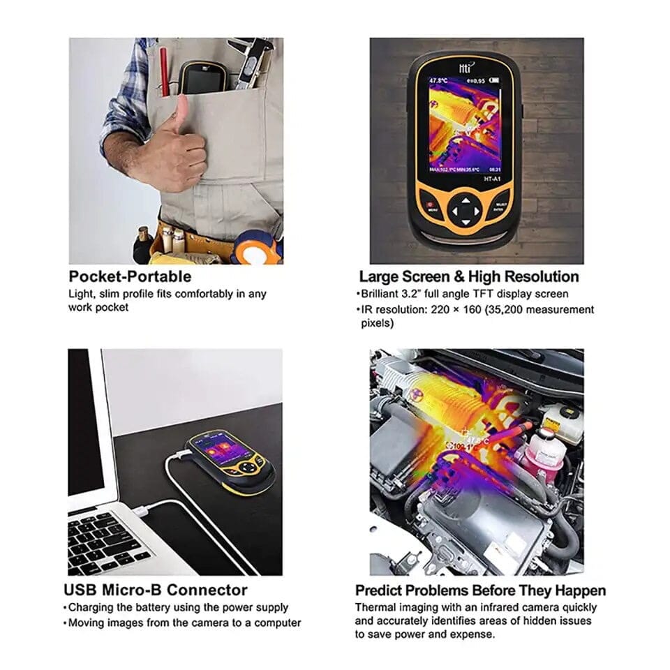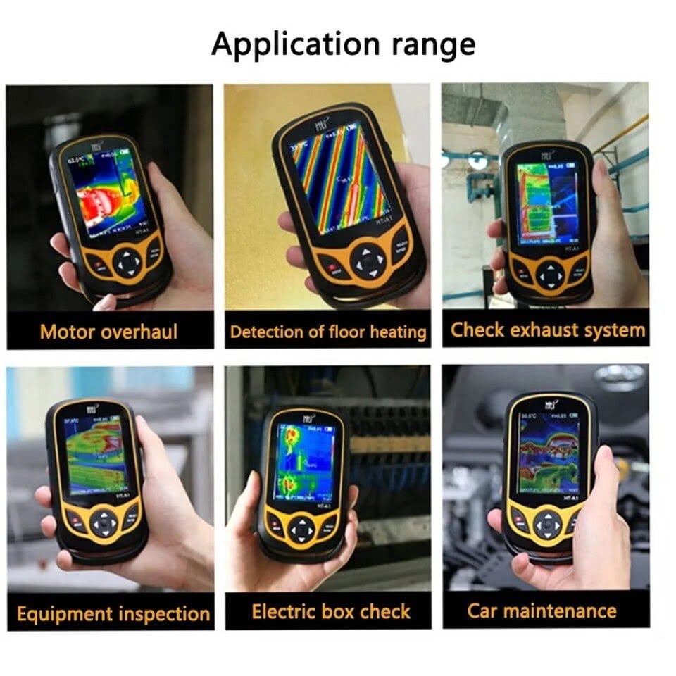 Эта инфракрасная камера объединяет измерение температуры поверхности и отображение теплового изображения в реальном времени. Традиционный инфракрасный термометр должен измерять каждую точку поверхности одну за другой, в то время как это не требуется для инфракрасной камеры, что значительно экономит время. Потенциальные проблемы могут быть четко установлены с помощью изображения на цветном экране. Кроме того, курсор в центре экрана используется для быстрого и точного определения температуры объекта в точке, на которую он наведен.