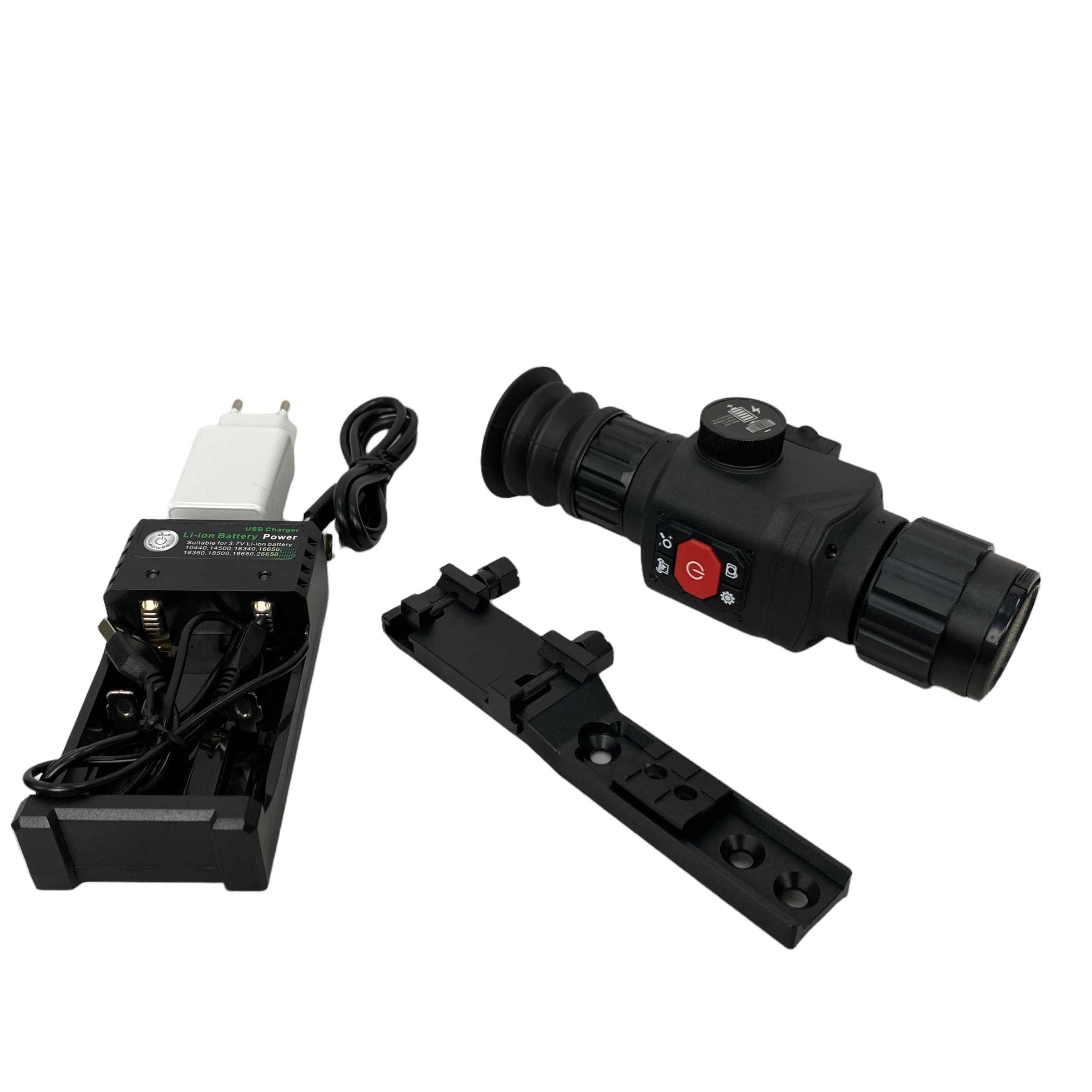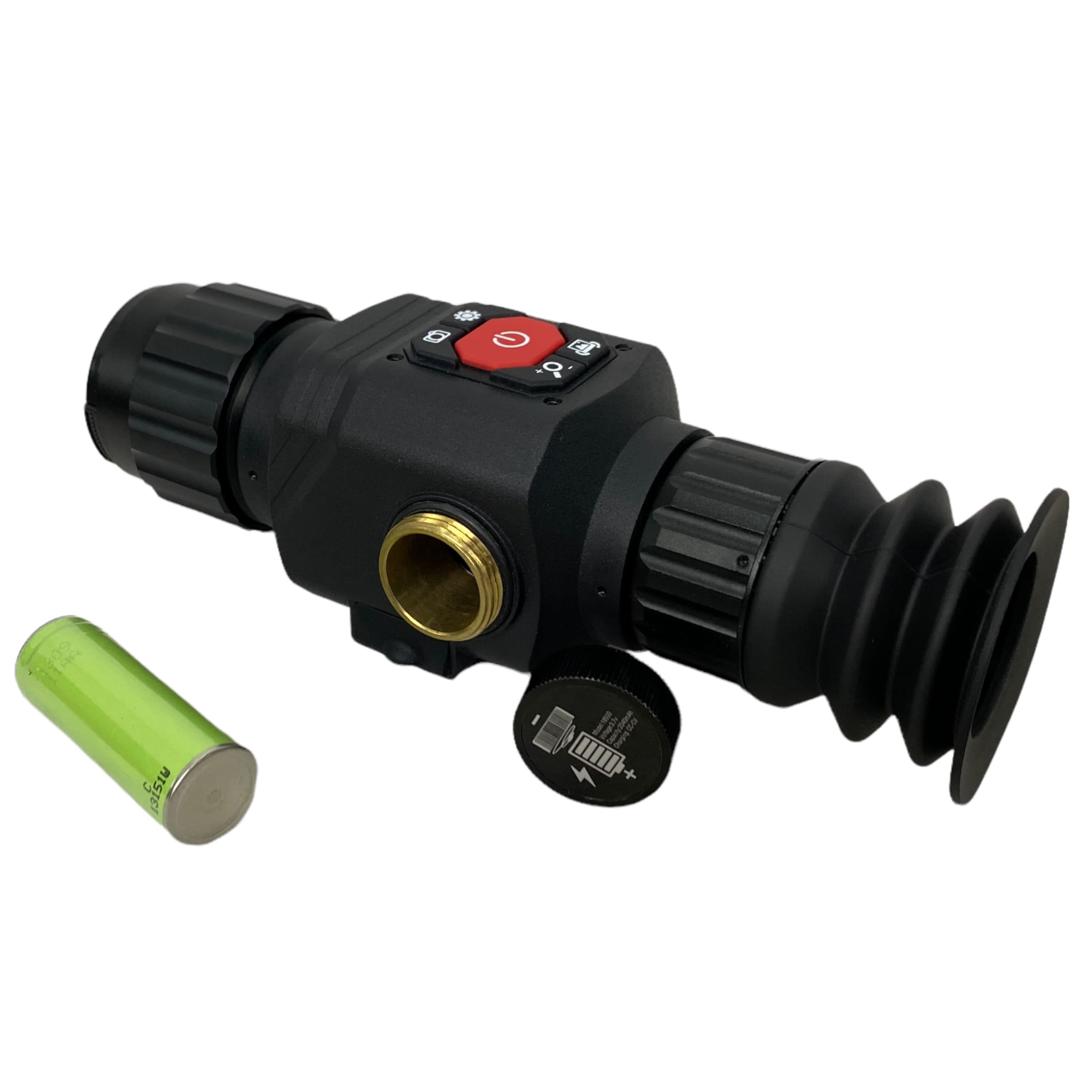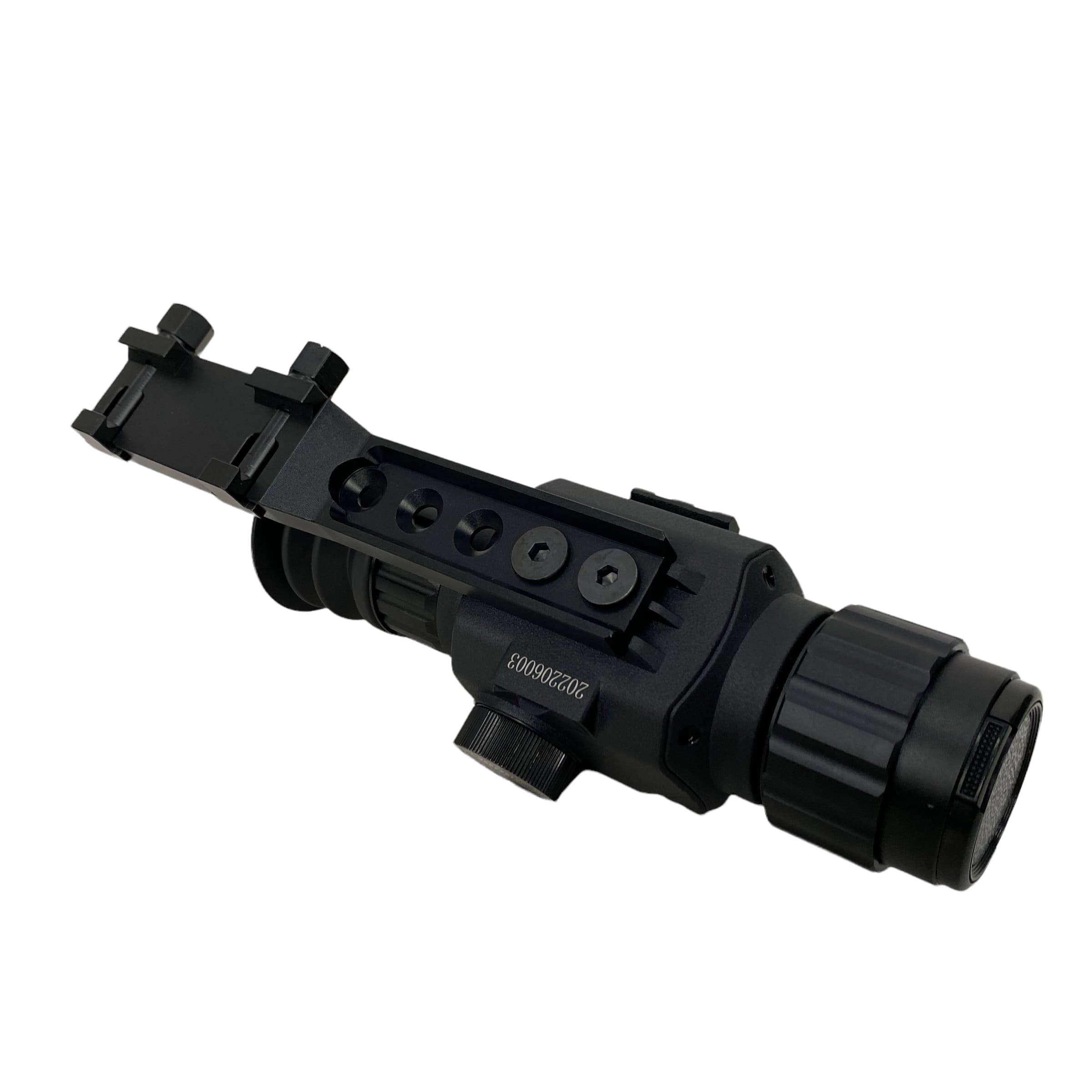 Этот монокуляр имеет двойное назначение и может использоваться как прицел для оружия, так и как отдельный тепловизор.