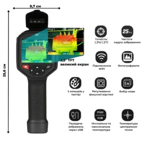 Технические характеристики тепловизора для энергоаудита WALCOM HT-H8 (384×288) с Wi-Fi: