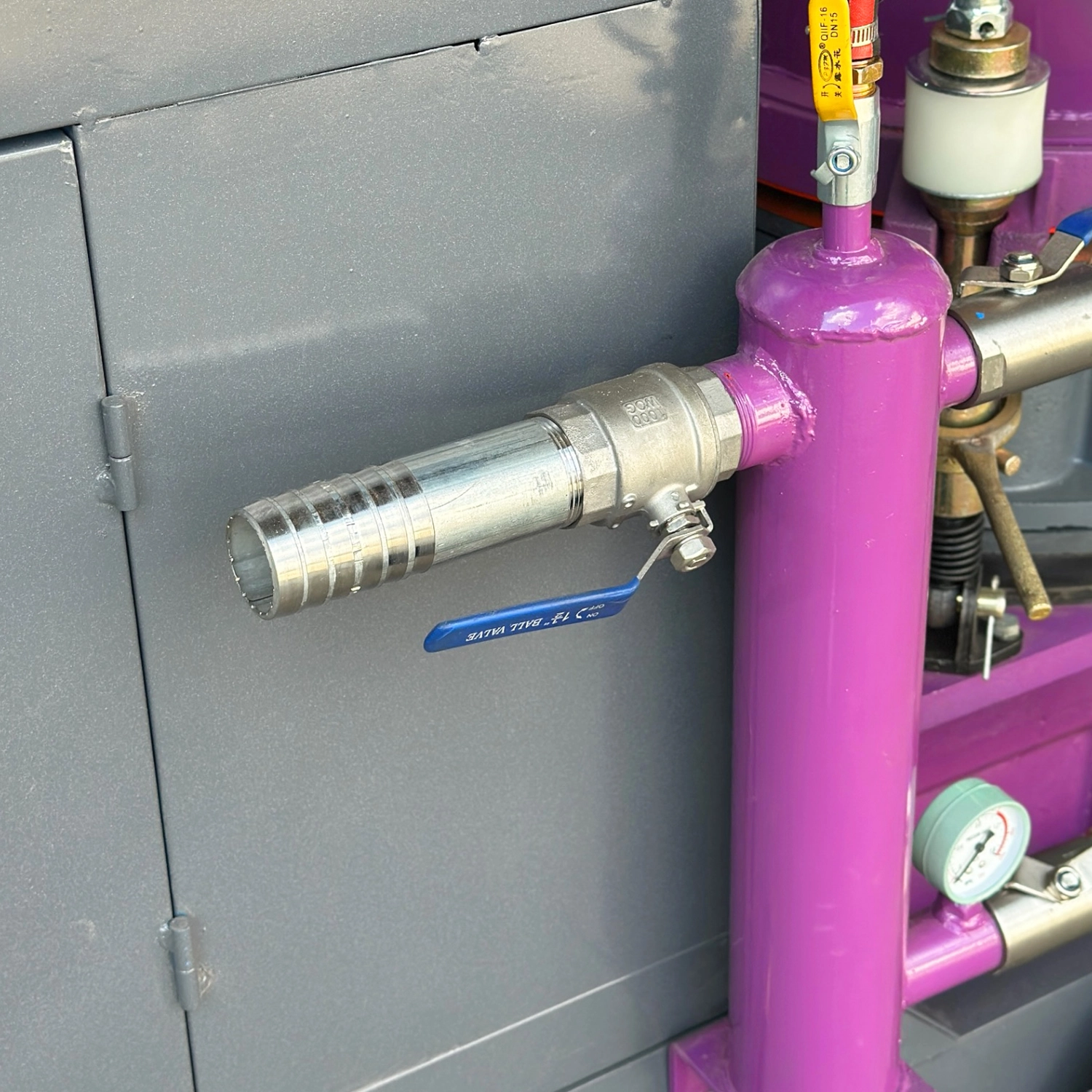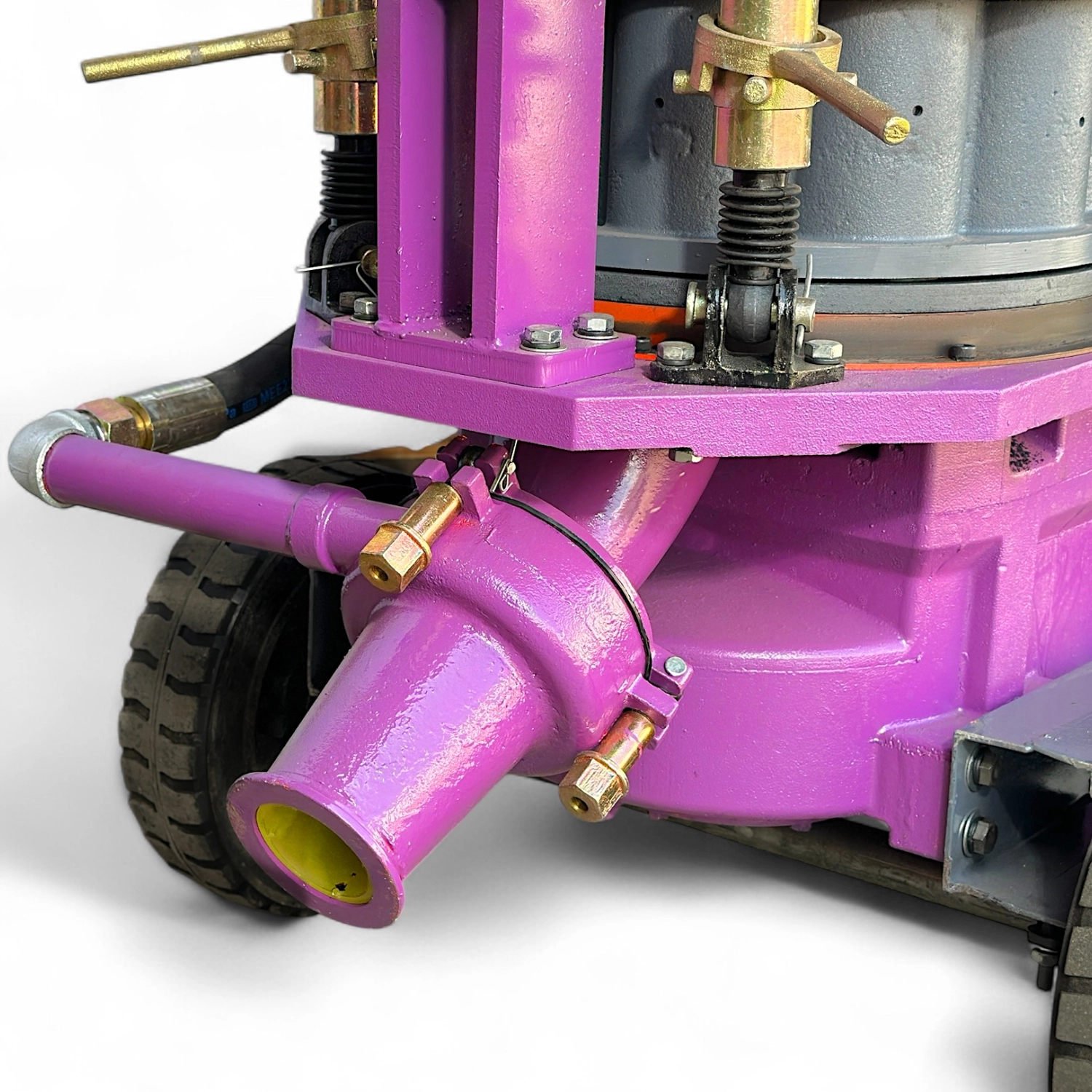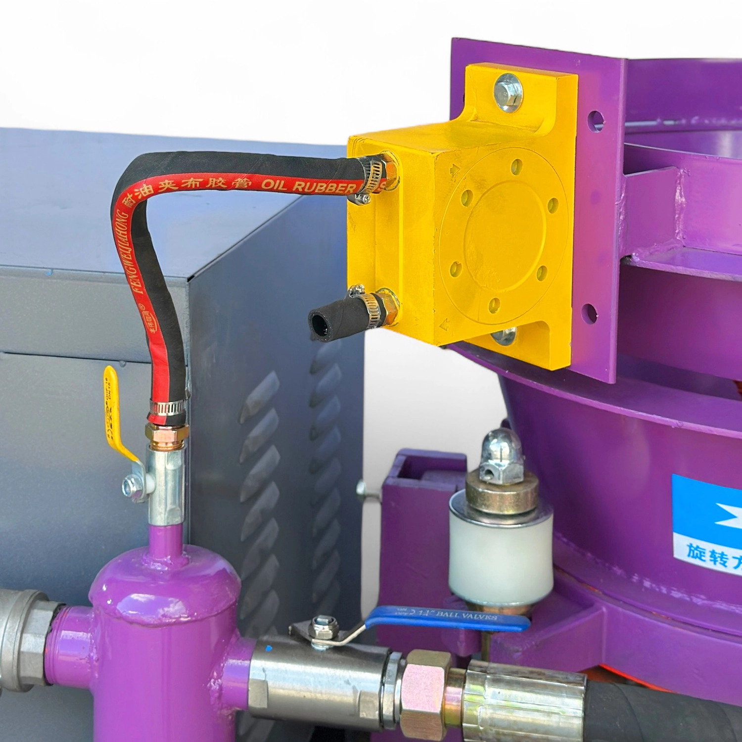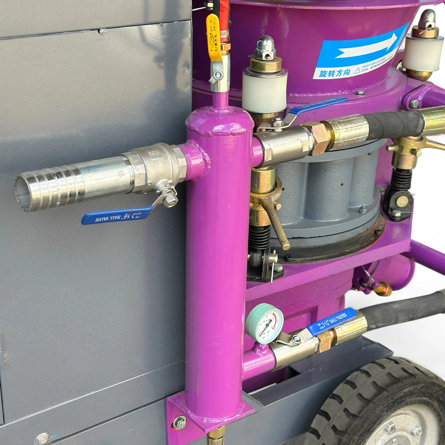 К торкрету установки шланг высокого давления не входит в комплект и покупается отдельно, подбирая длину по потребности объекта; рекомендуемый внутренний диаметр шланга и транспортных шлангов составляет 32–50 мм в зависимости от объема подачи смеси и расстояния до поверхности нанесения.