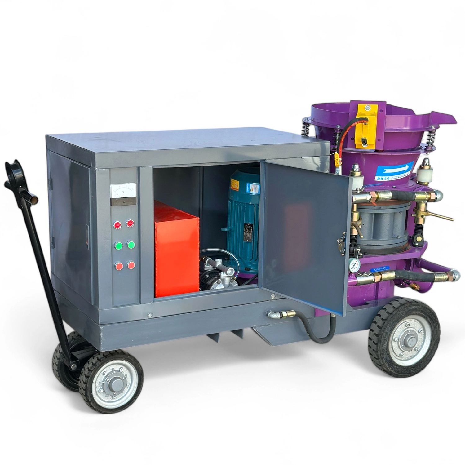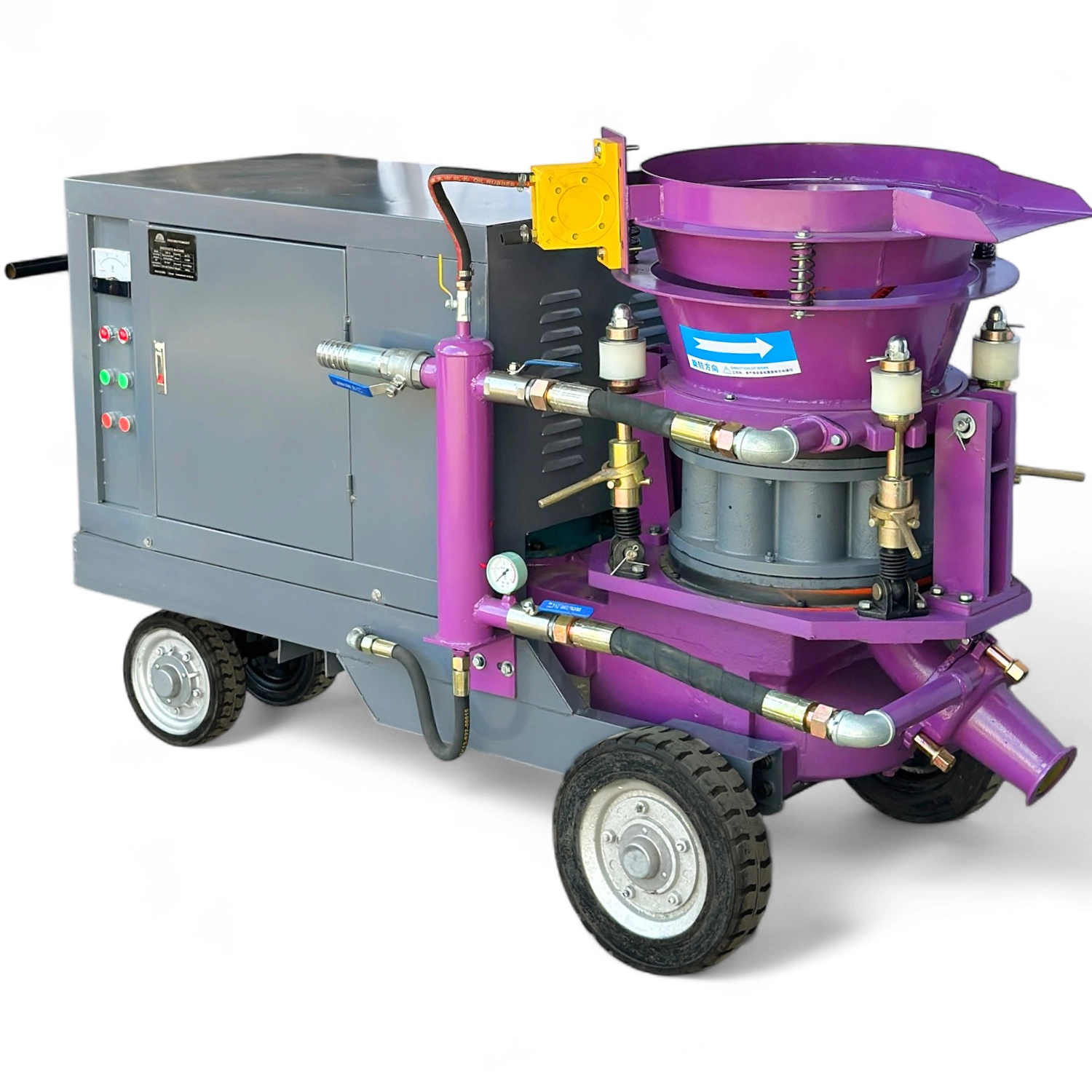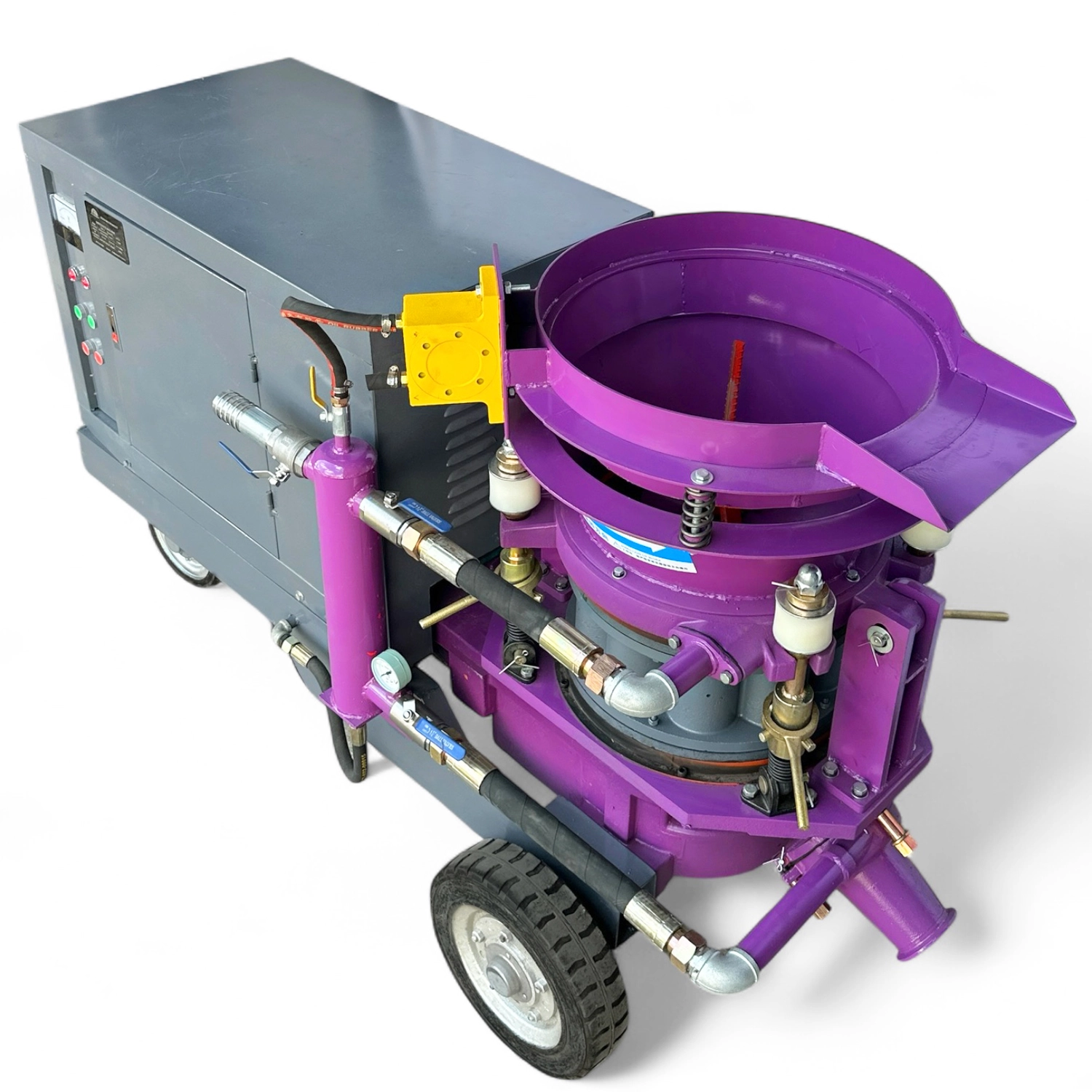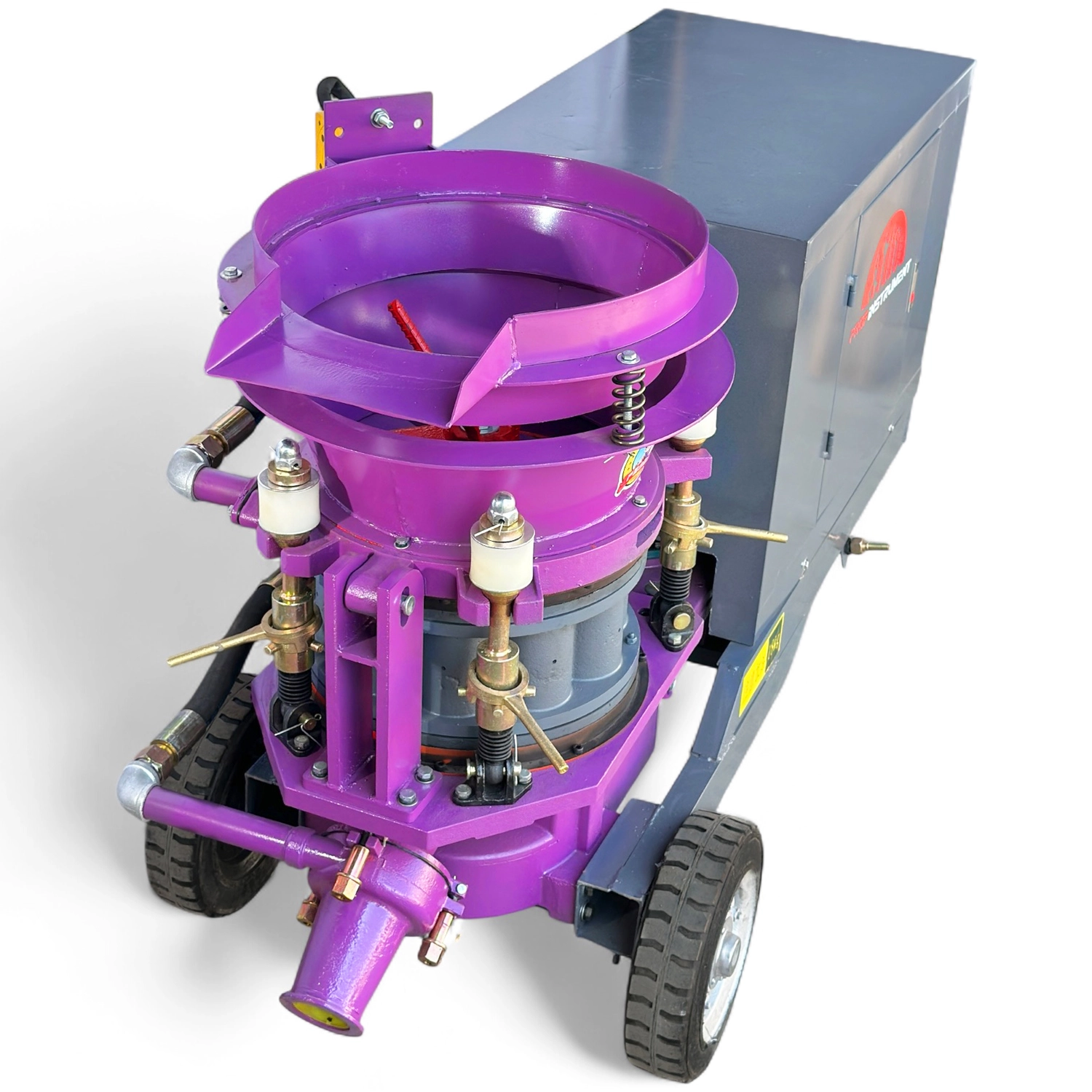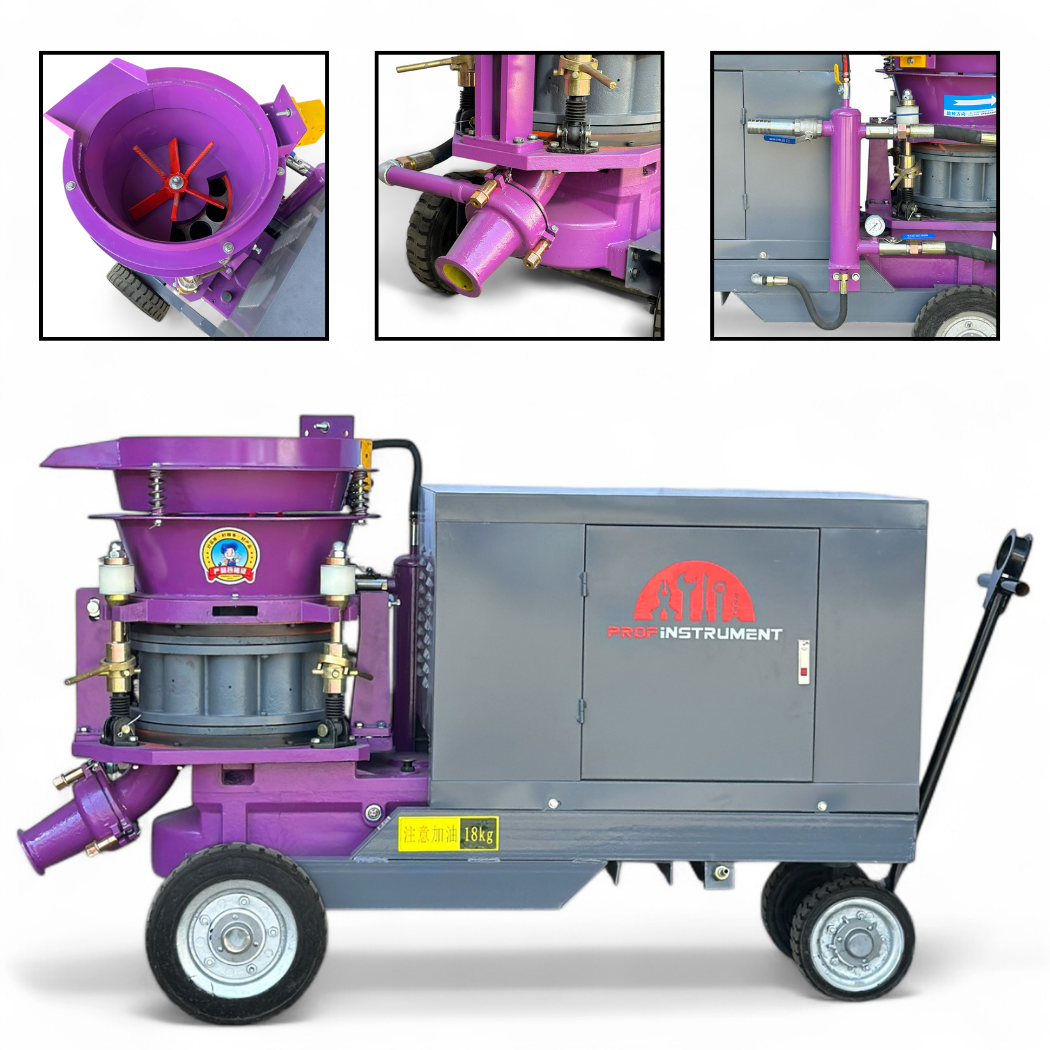Торкрет установки Profinstrument GSP-6 работает на роторном принципе, что обеспечивает высокую прочность и надежность в тяжелых условиях. Поддерживает как сухое, так и мокрое торкретирование, что позволяет адаптировать его к разным видам работ.