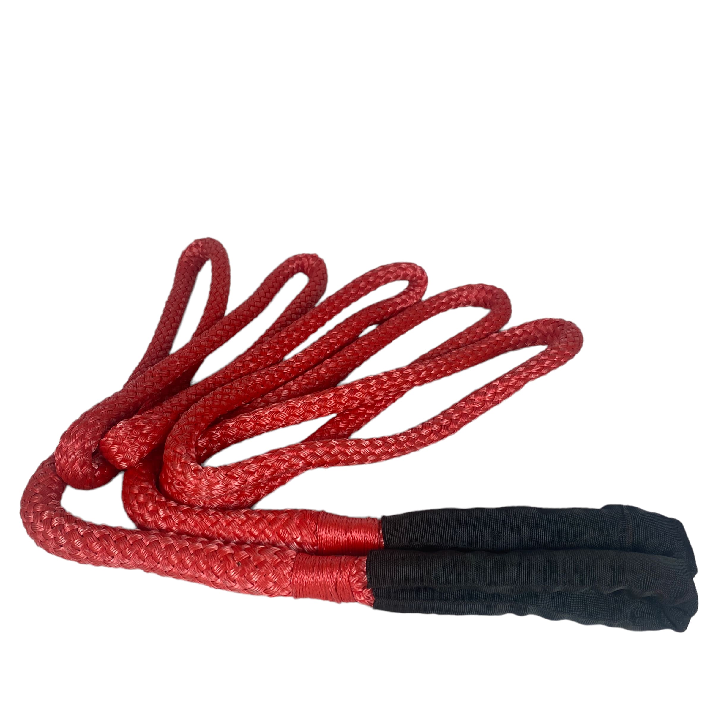 Изготовлен из сверхпрочного синтетического материала. Способен растягиваться и возвращаться к стандартному размеру быстро и с большой силой. С помощью рывочного каната вы без проблем вытяните застрявший внедорожник даже наибольшего веса, не повредив ни его, ни извлекающий автомобиль.
