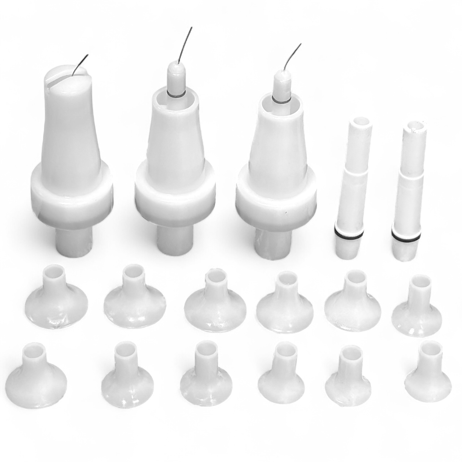 В комплект входит всё необходимое для полноценной работы, включая расходные материалы, такие как сменные сопла — вы сможете приступить к работе сразу же, без дополнительных затрат.