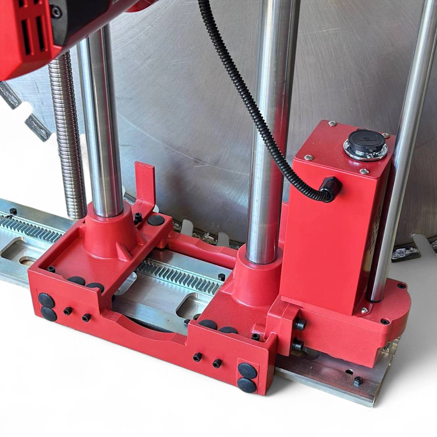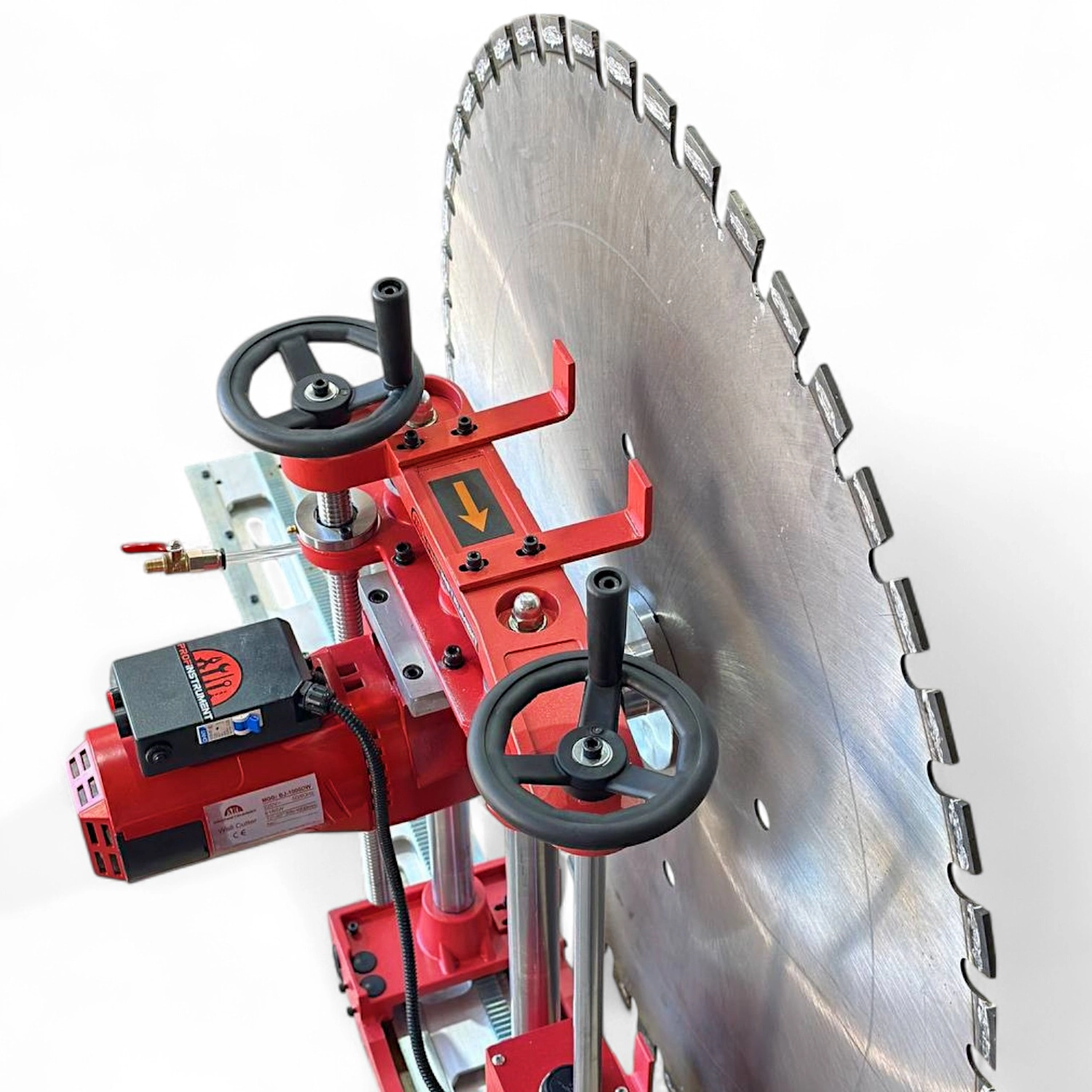 Стенорез оснащен мощным двигателем 6,1 кВт и способен работать с алмазными дисками диаметром от 300 до 1000 мм, что обеспечивает глубину реза до 420 мм. Это позволяет выполнять сложные работы без лишних повреждений стен и полов и дополнительных затрат времени. Надежная конструкция и точная механика обеспечивают максимально аккуратный пропил даже в труднодоступных местах.