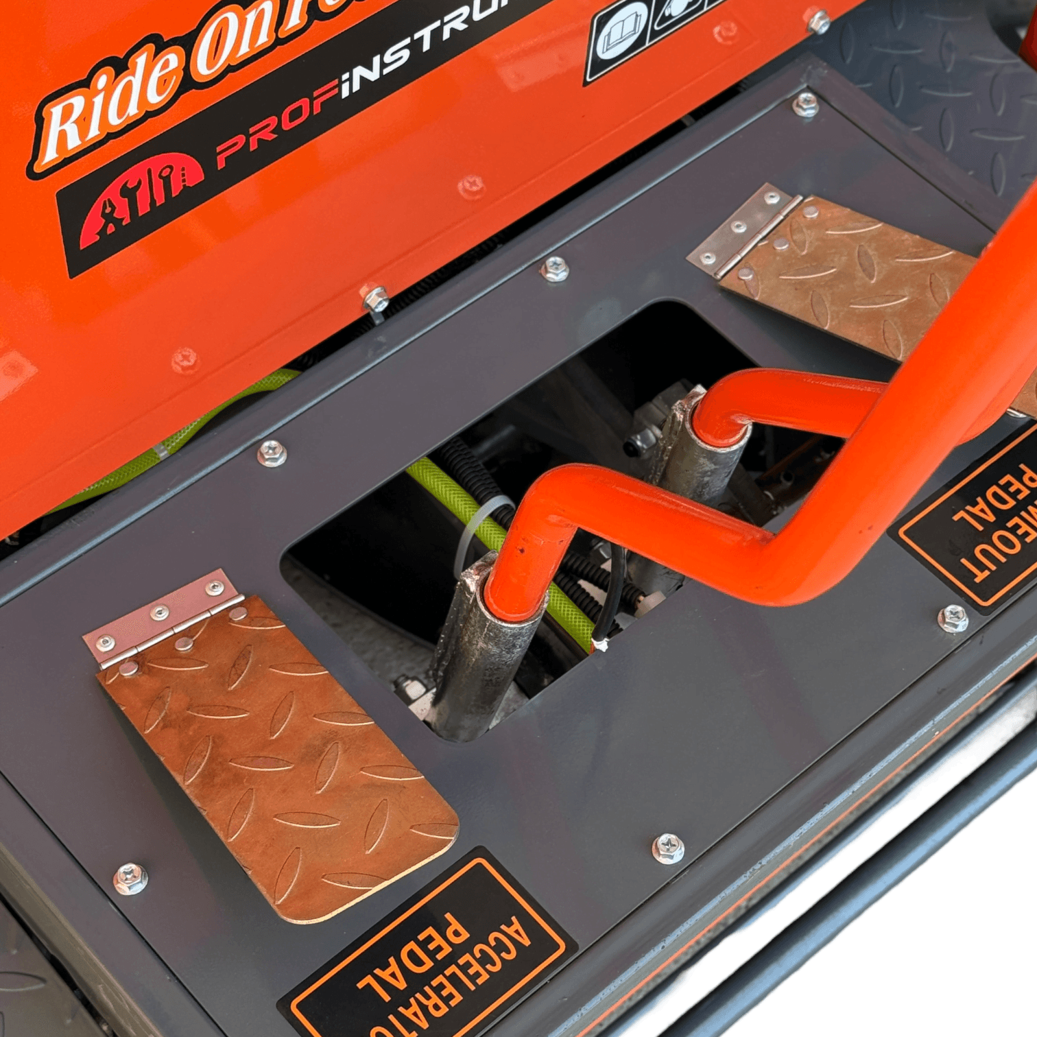 - Эргономичный дизайн : Низкое расположение сиденья снижает центр тяжести, что обеспечивает лучшую стойкость и хороший обзор рабочей зоны. Сидение можно наклонить вперед для легкого доступа к двигателю, а также обеспечивает комфортные условия для оператора, снижая усталость во время длительной работы.