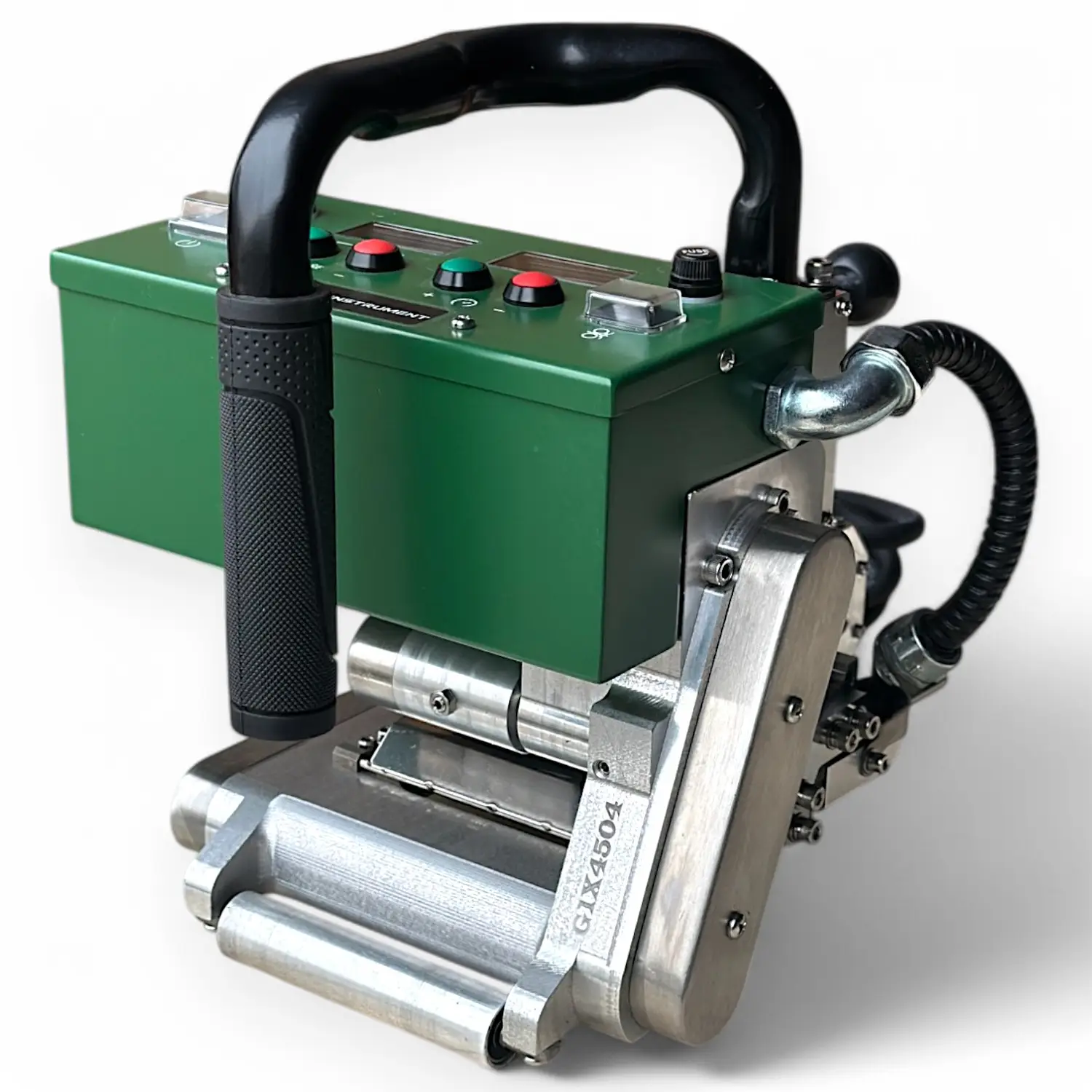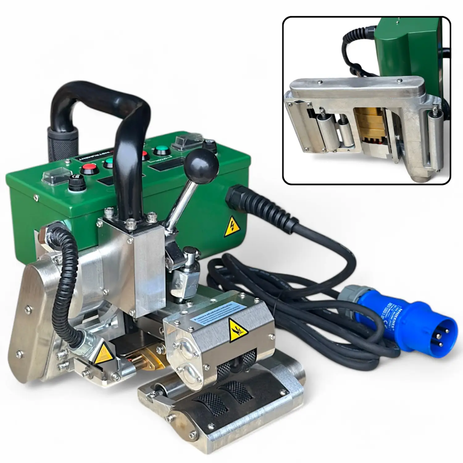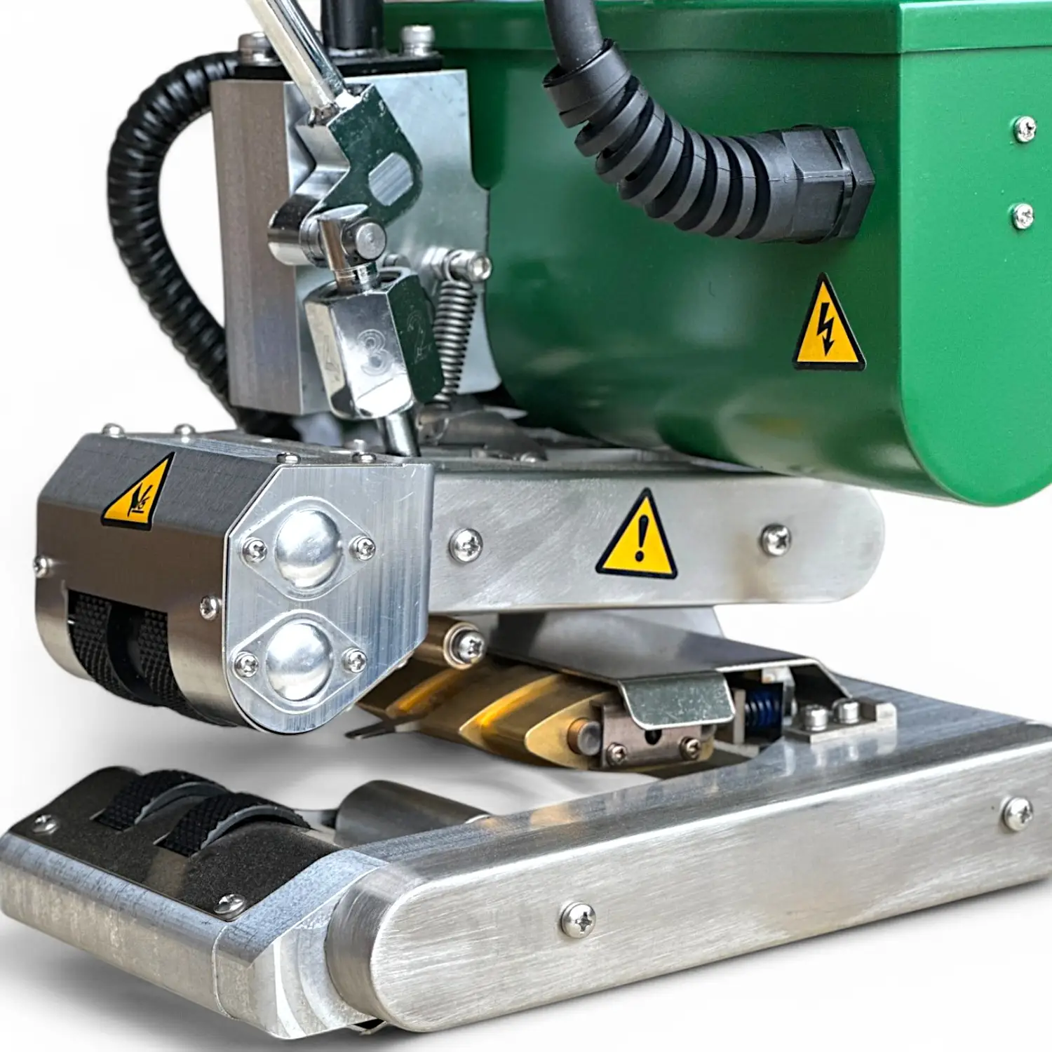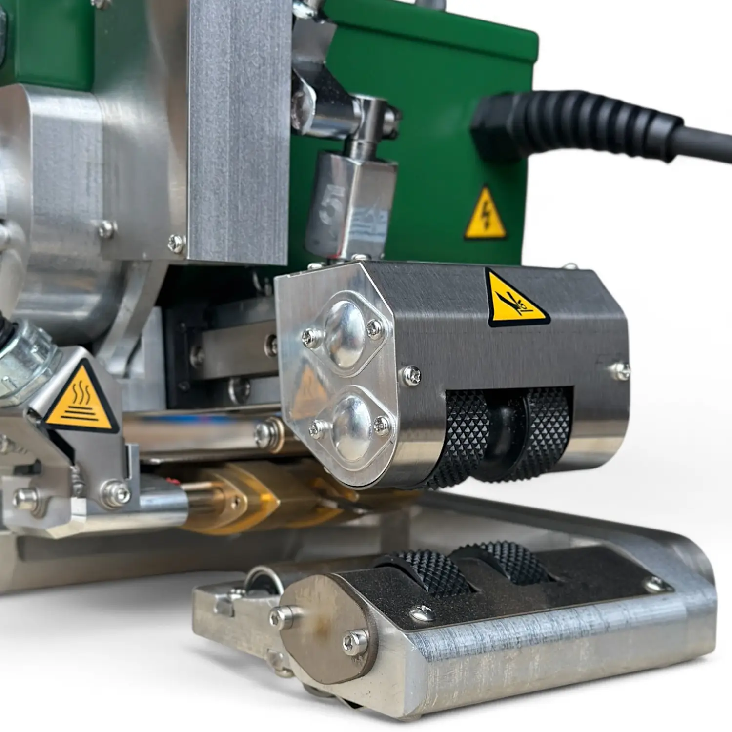 - Подвижная головка с зажимными роликами для равномерного распределения давления по всей ширине шва.
